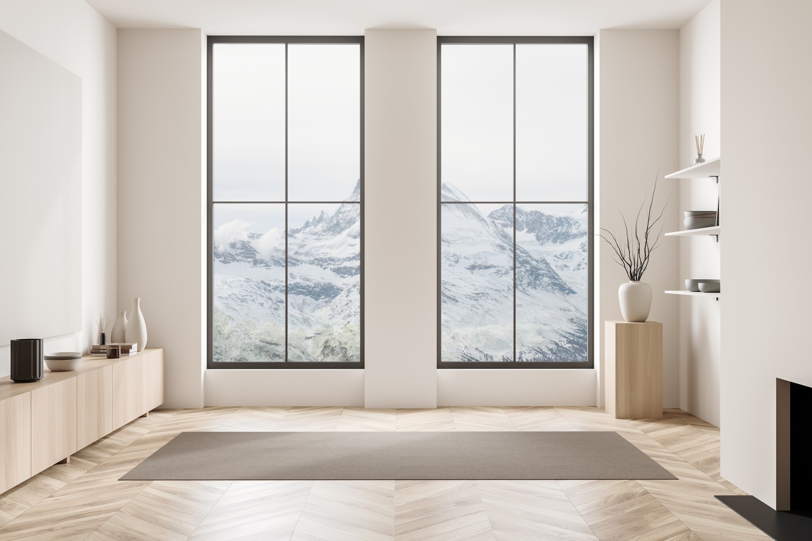 Eine ruhige Panoramaansicht eines schneebedeckten Gipfels, die natürliche Schönheit und Ruhe in jeden Raum bringt.