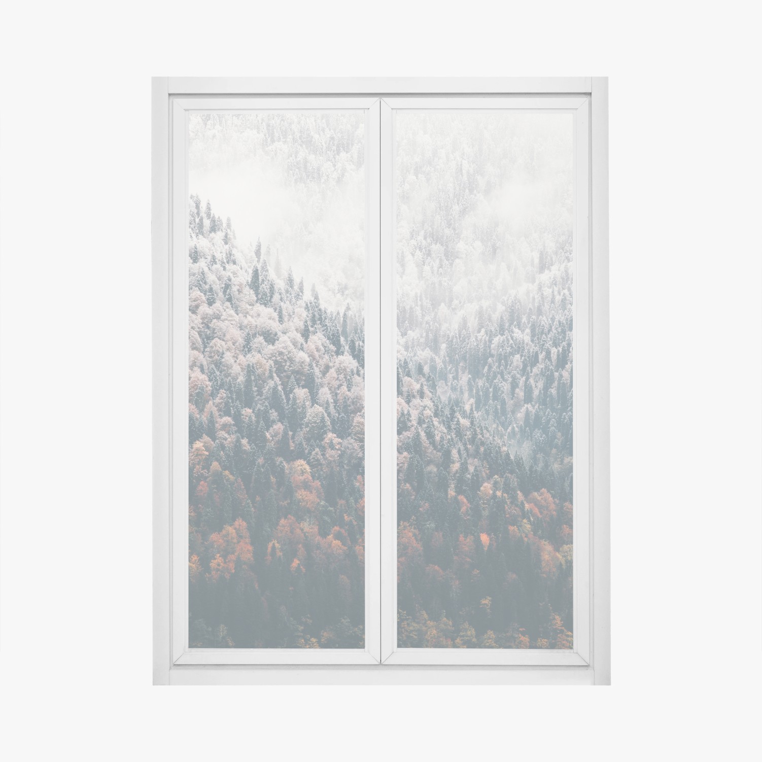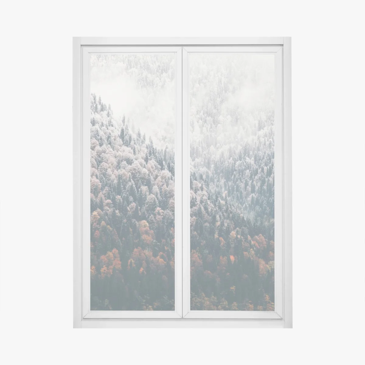 Fensteraufkleber Nebliger herbstwald am schneebedeckten berg