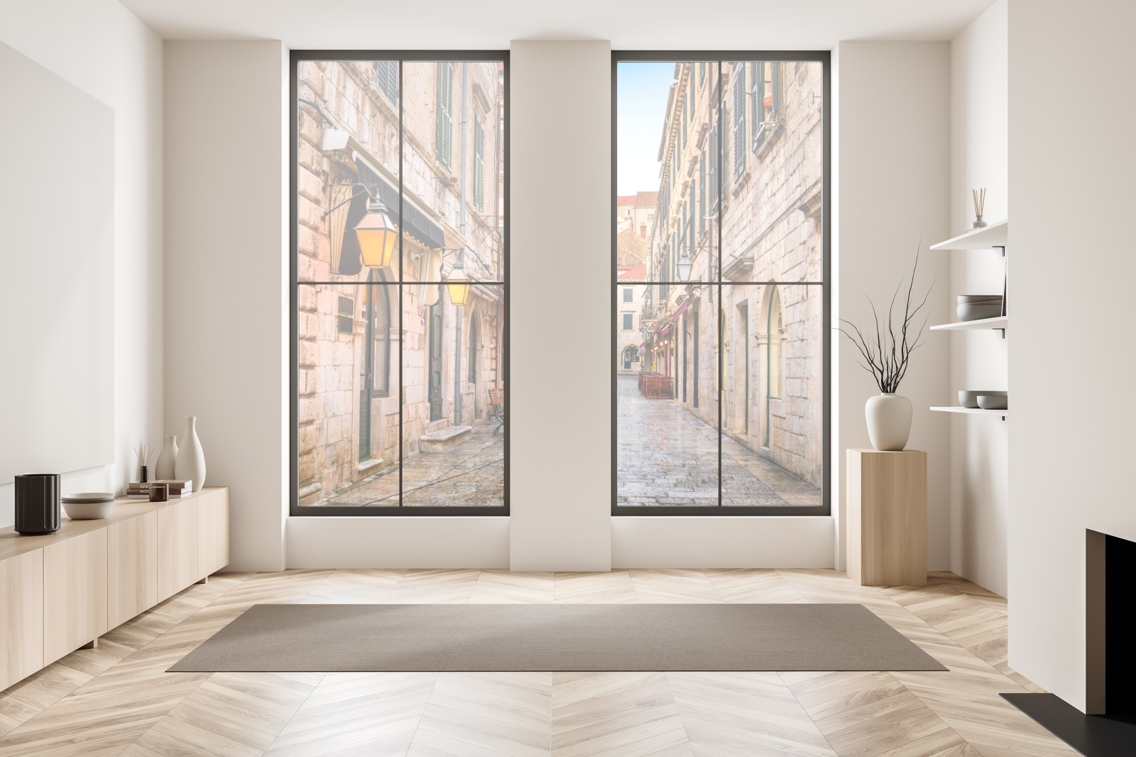 Charmanter Blick auf eine sonnige Straße in Dubrovnik, der mediterranen Flair und historische Atmosphäre in Ihr Zuhause bringt.