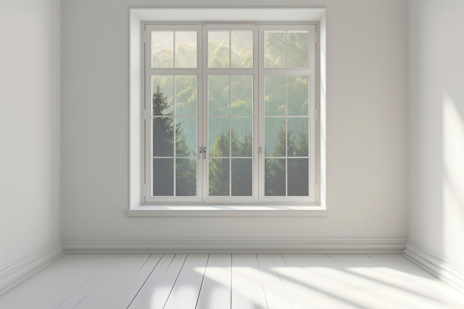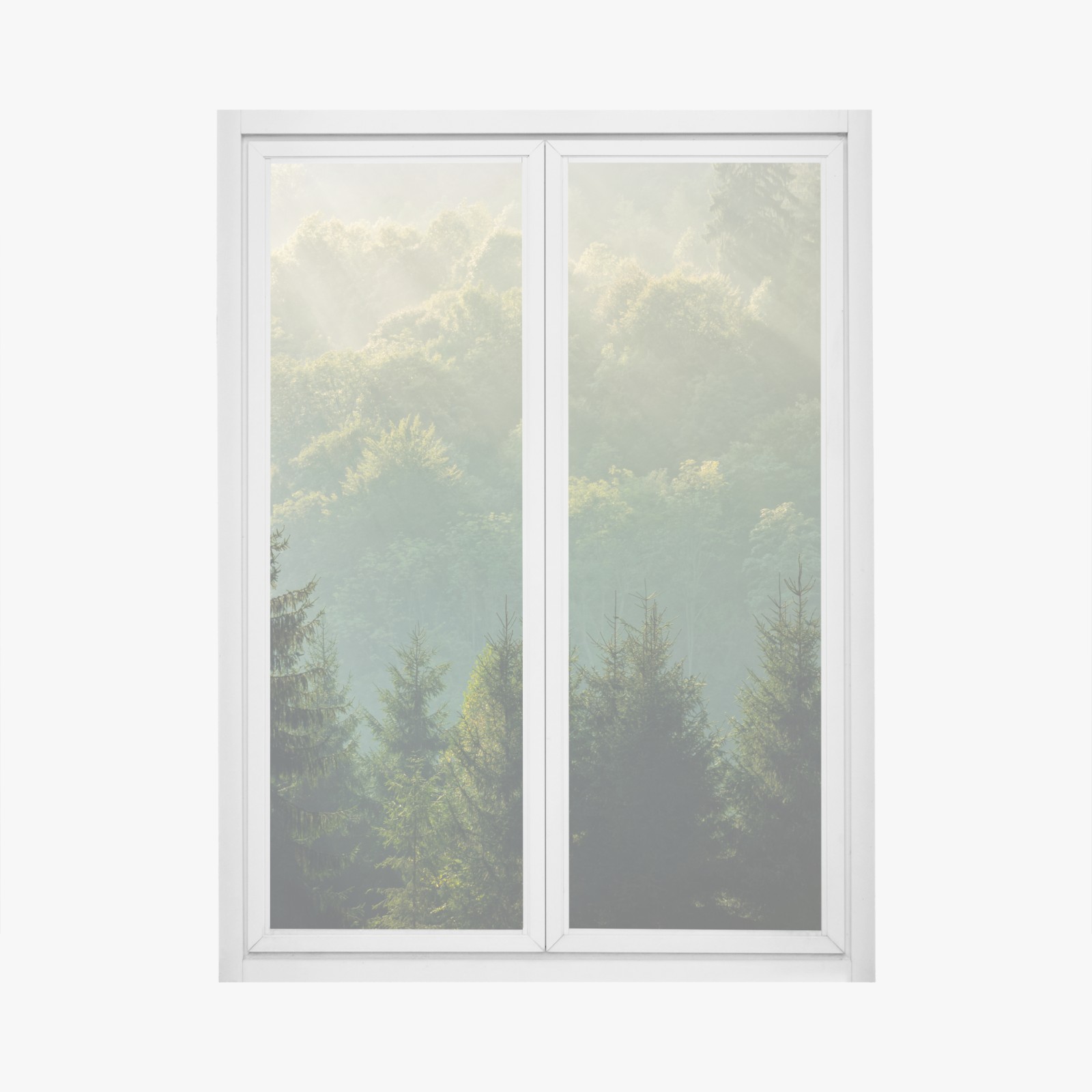 Fensteraufkleber nebeliger fichtenwald in den Karpaten bei sonnenaufgang