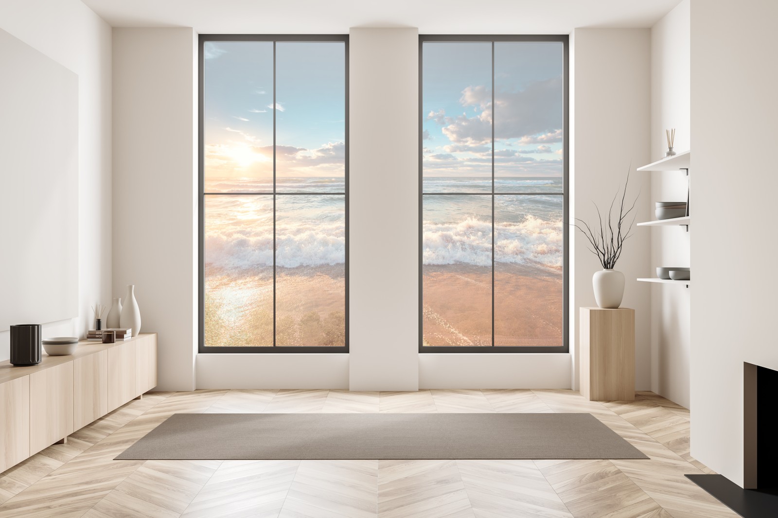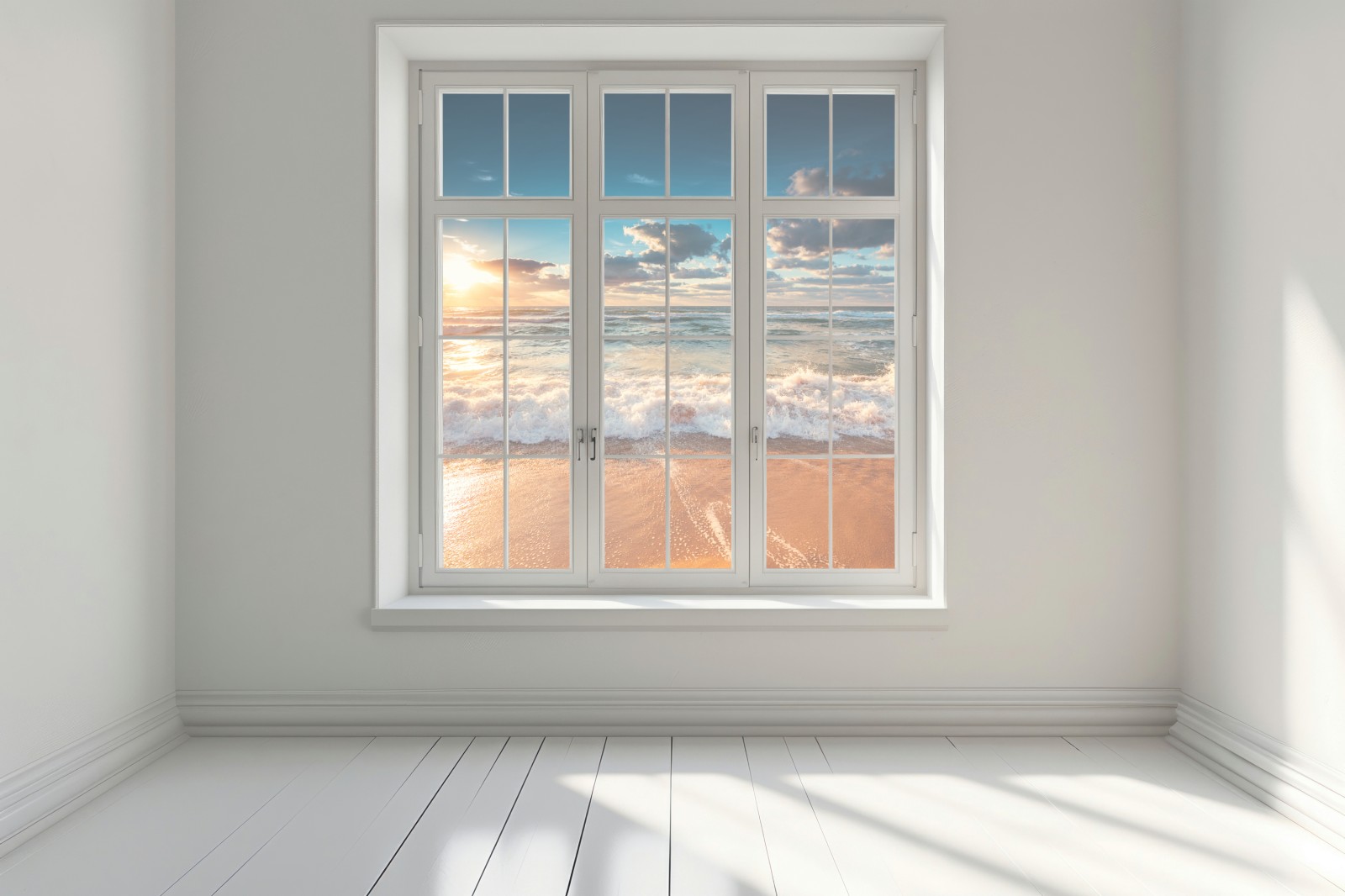 Fensteraufkleber goldener sonnenaufgang über der meeresküste