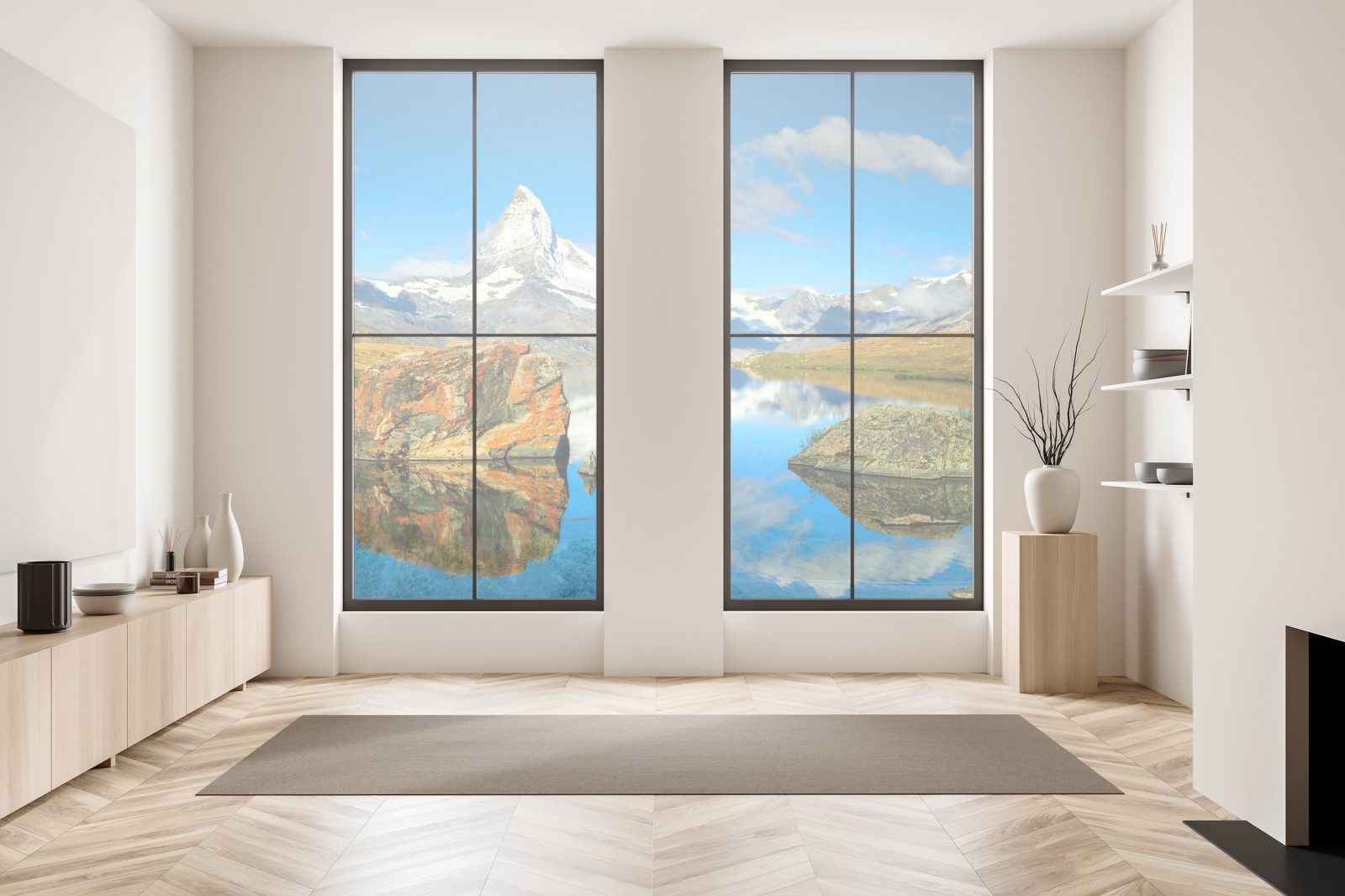Atemberaubender Blick auf das Matterhorn, das sich in einem klaren alpinen See spiegelt und ruhige Bergatmosphäre sowie intensive Blautöne in Ihr Zuhause bringt.