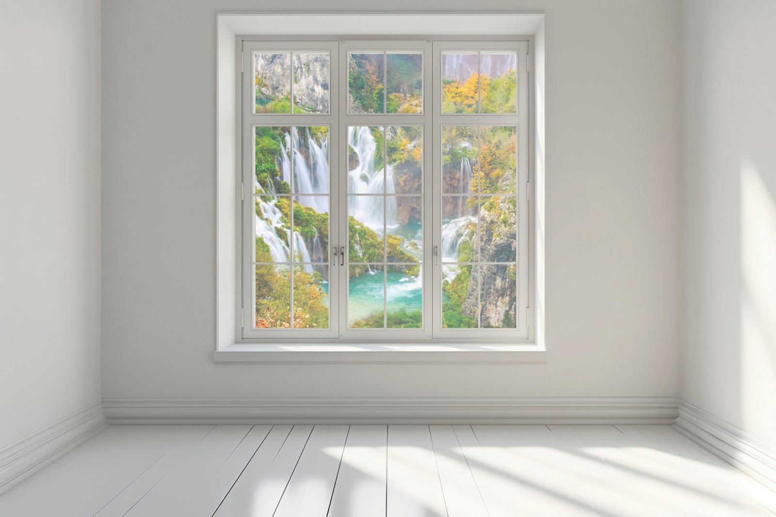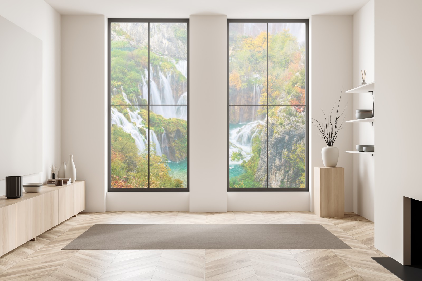 Fensteraufkleber türkisfarbener wasserfall im herbst