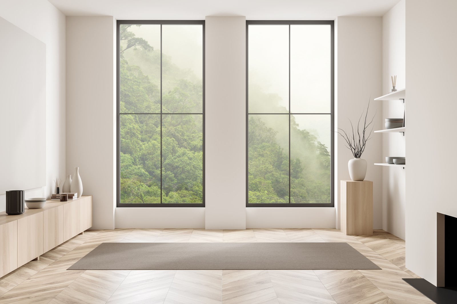 Üppiger grüner Regenwald im Nebel schafft eine beruhigende, eindringliche Landschaft, die ideal ist, um Natur ins Zuhause zu holen.