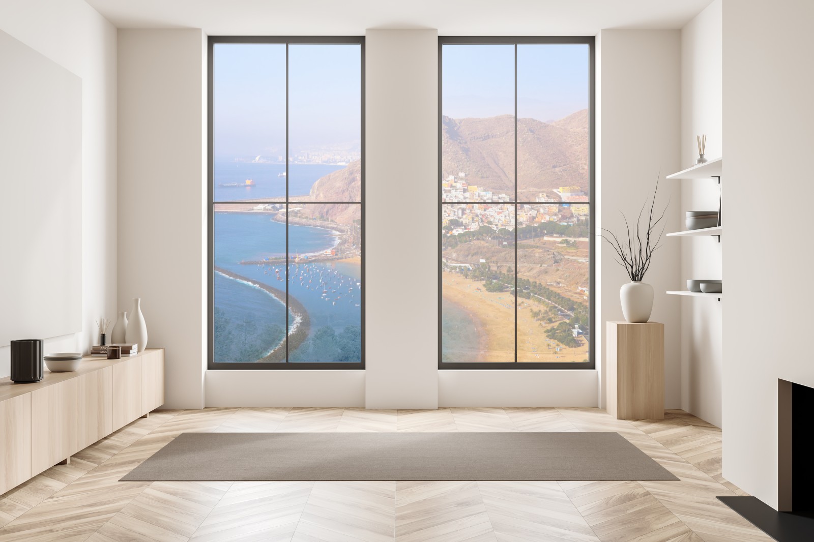 Bringen Sie die ruhige Küste von Playa de Las Teresitas in Ihr Zuhause mit diesem lebendigen Küstenfoto, ideal für eine entspannte Atmosphäre.