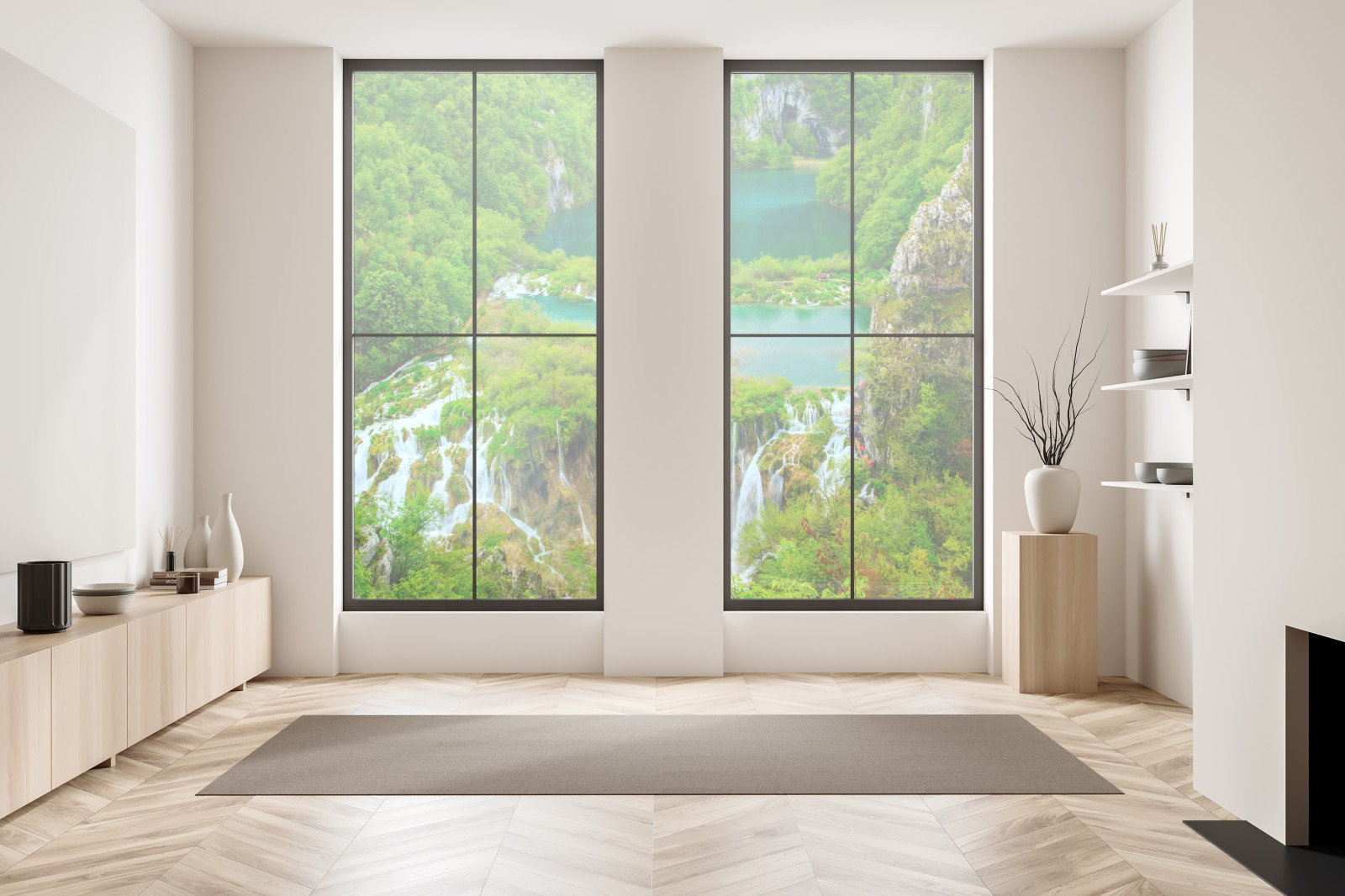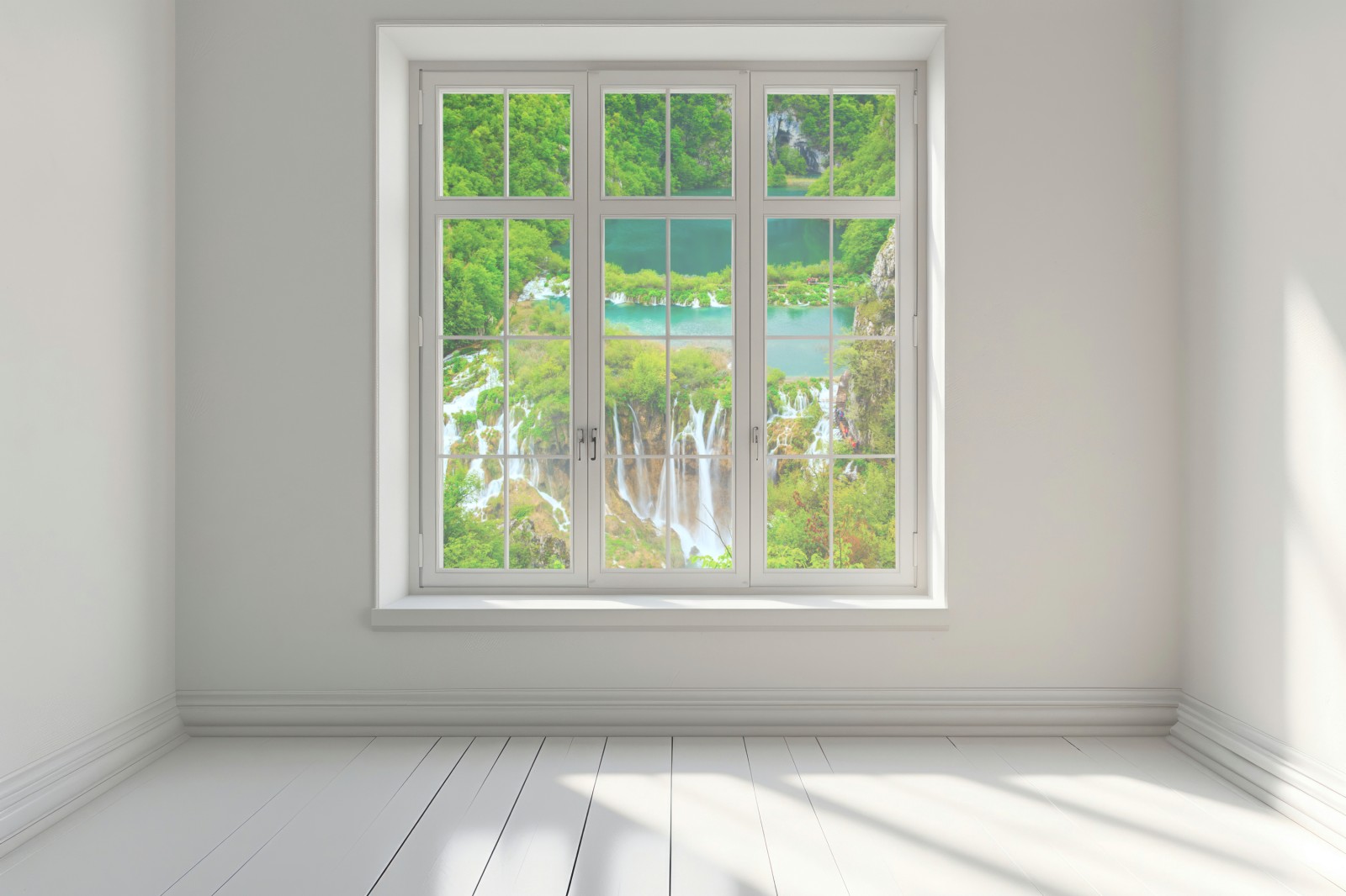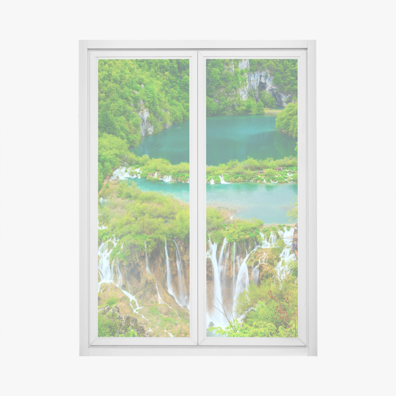 Fensteraufkleber üppiger wasserfall und türkise seen