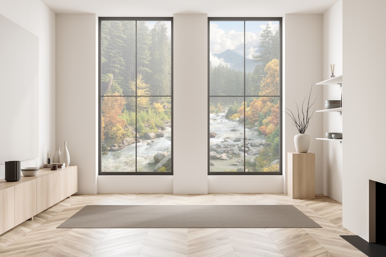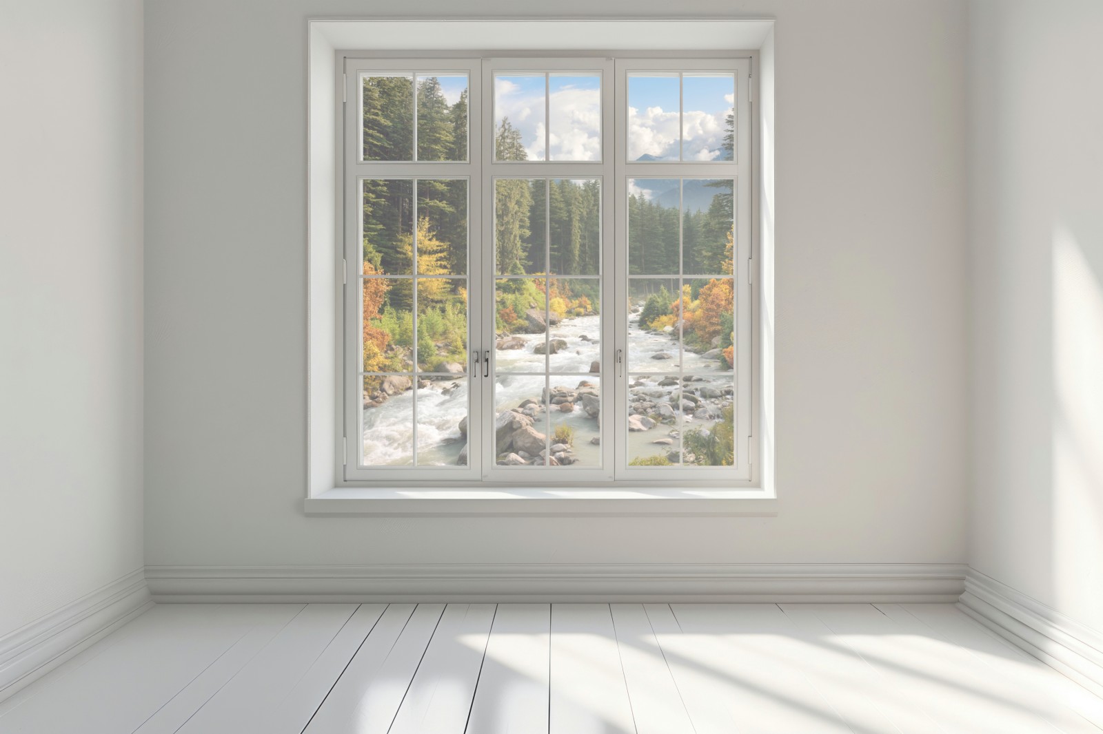 Fensteraufkleber herbstliche berglandschaft mit fluss