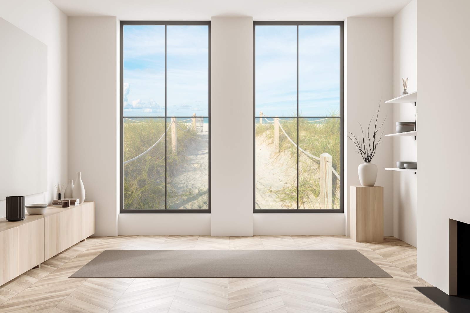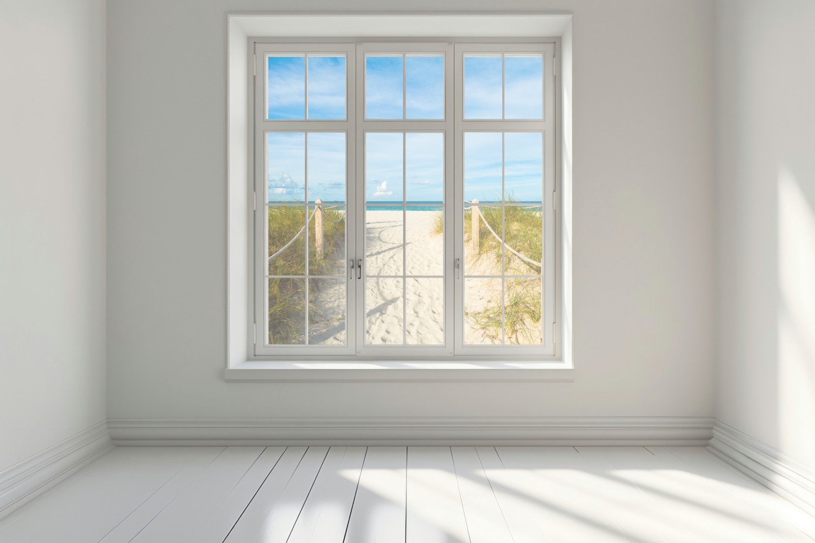 Heller Küstenblick auf einen Sandweg, der zum türkisblauen Ozean in Miami führt, ideal für ein entspanntes Wohnambiente.