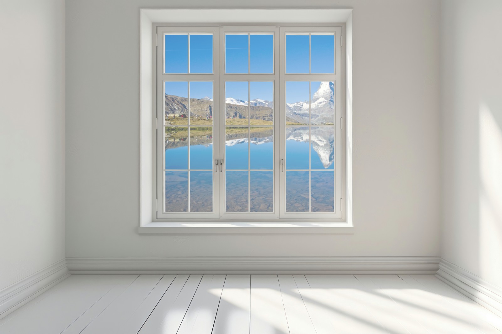 Fensteraufkleber alpenberg spiegelung über stillem see
