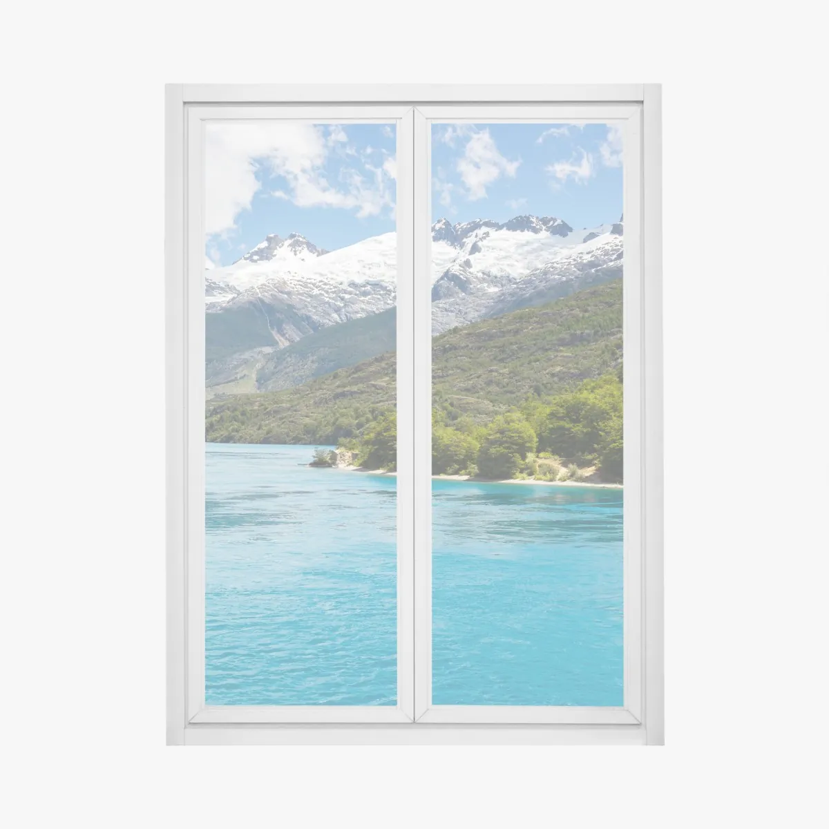 Fensteraufkleber türkisfarbener bergsee mit schneebedeckten gipfeln