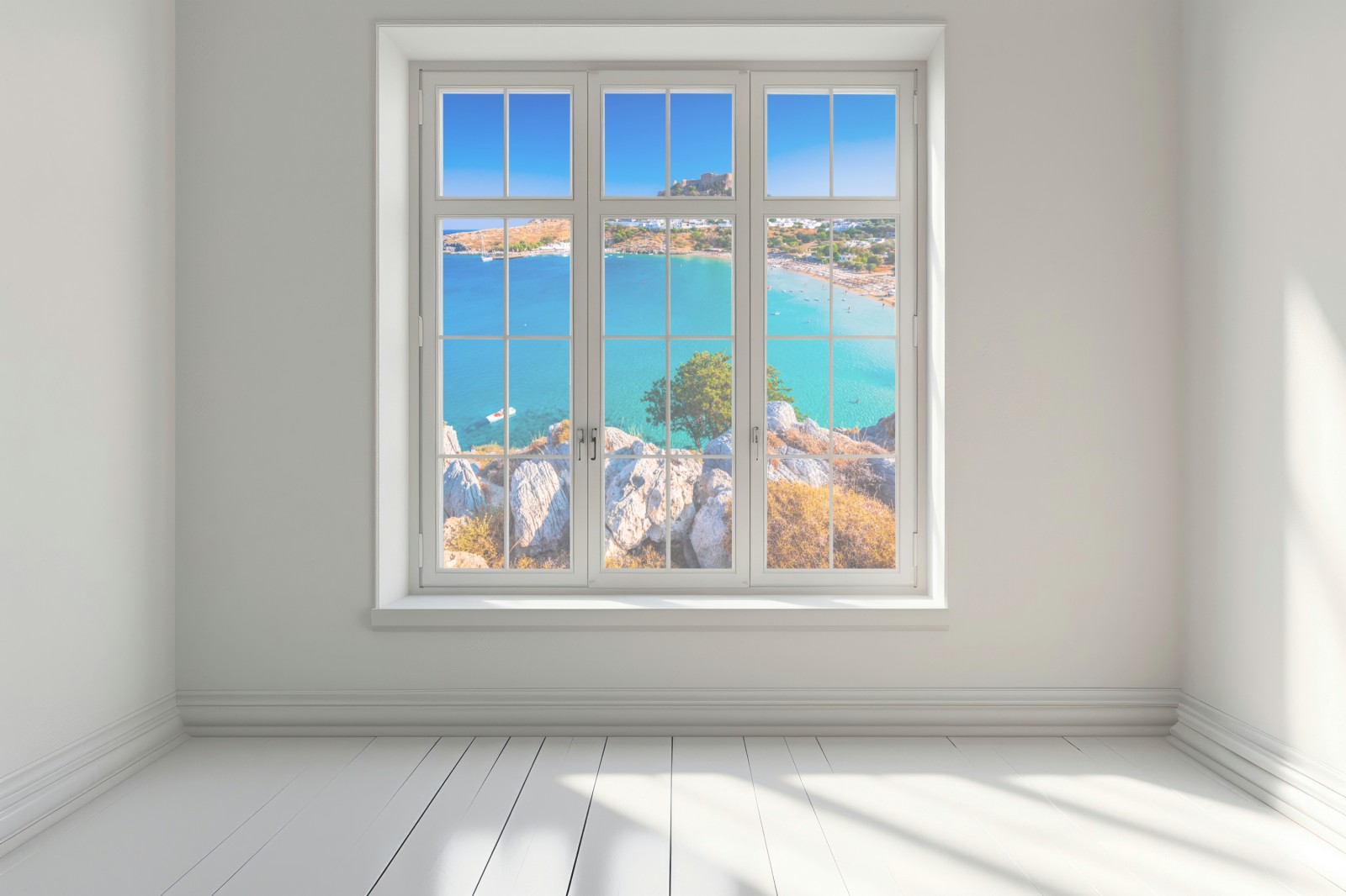 Fensteraufkleber türkisbucht in Lindos, Rhodos