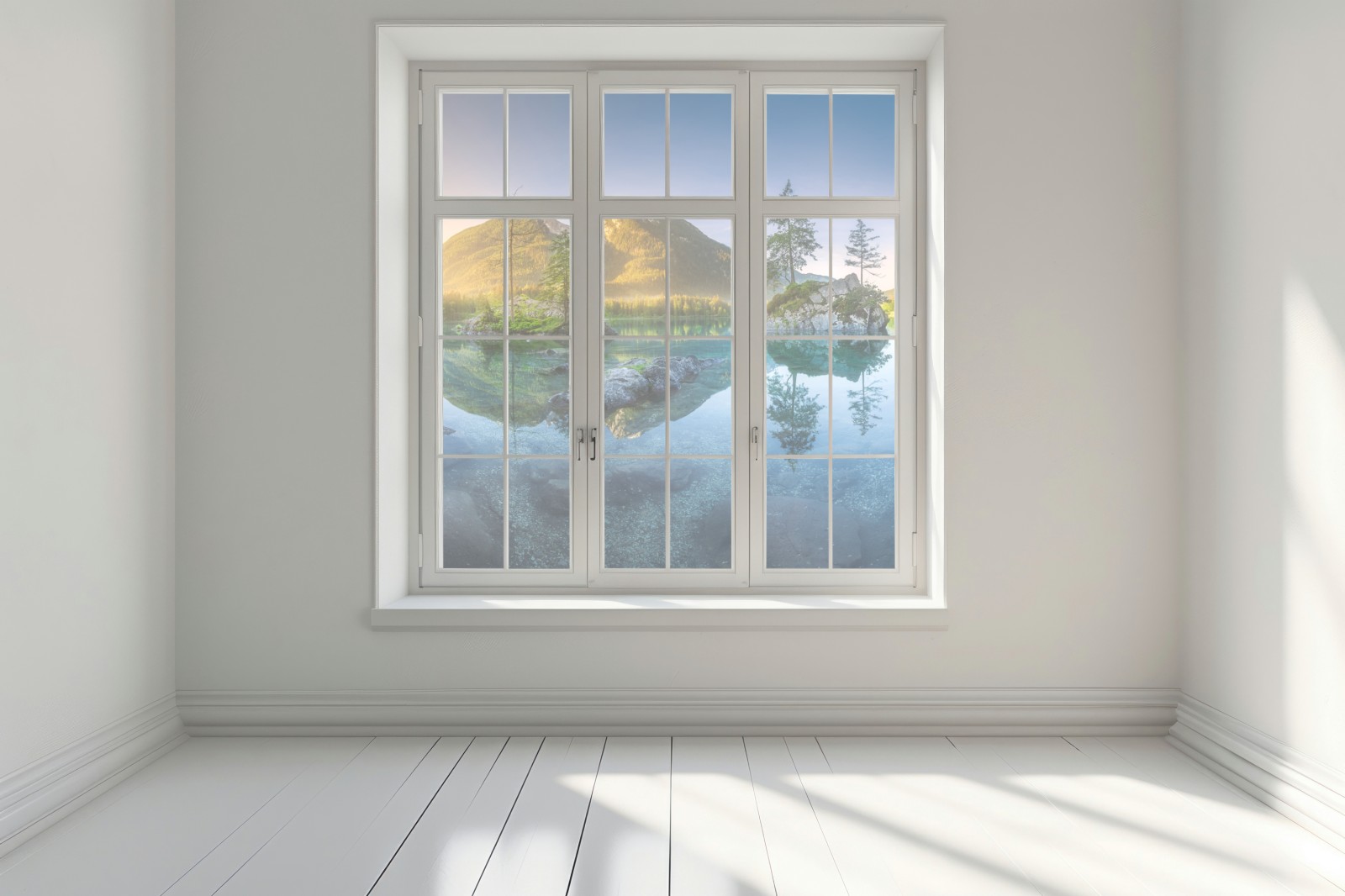 Fensteraufkleber alpensee bei sonnenaufgang mit spiegelnder reflexion