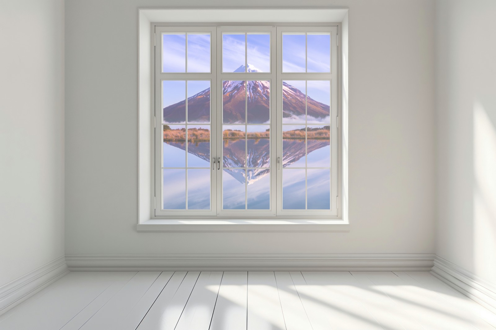 Fensteraufkleber majestätische bergspiegelung bei sonnenaufgang