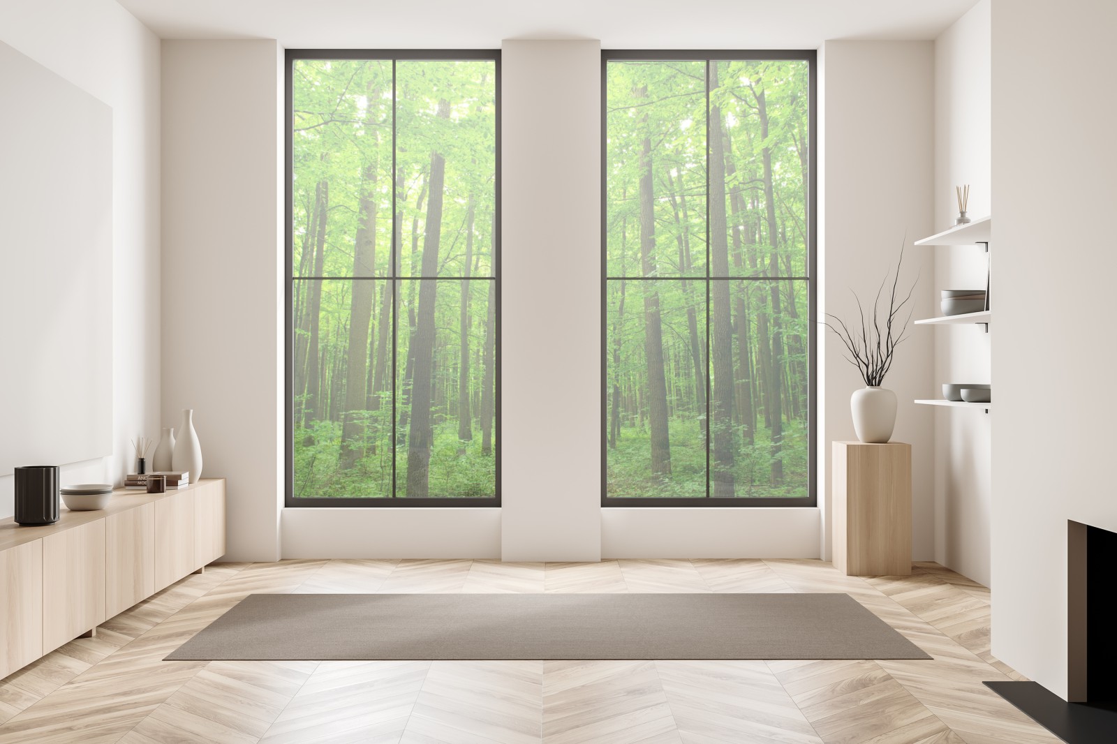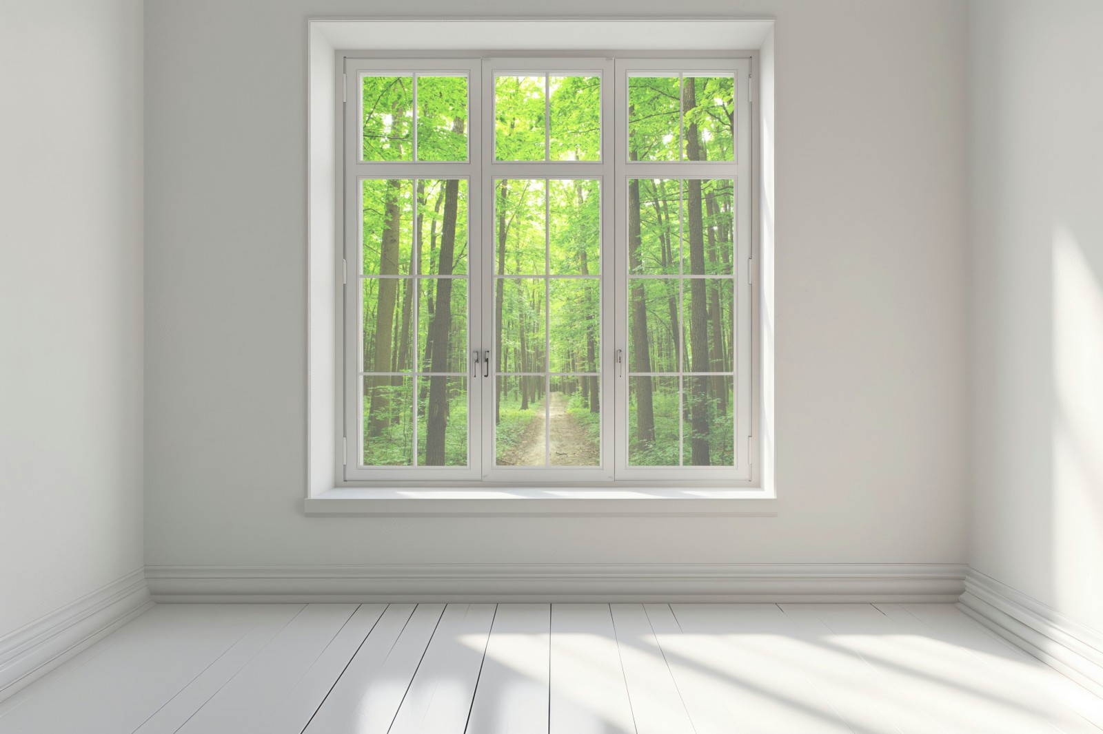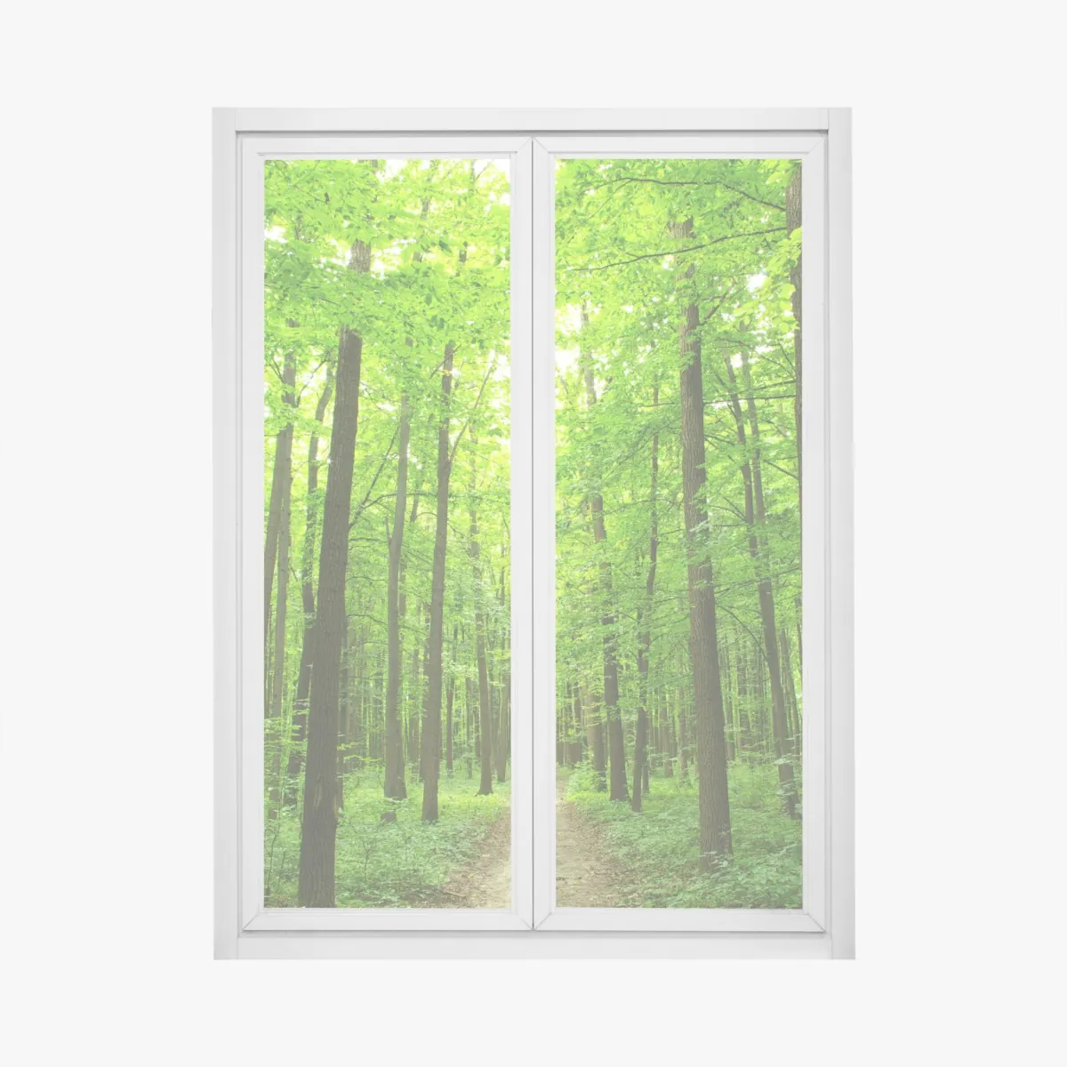 ein ruhiger waldweg im satten grün, der ihrem raum natürliche ruhe und frische verleiht.