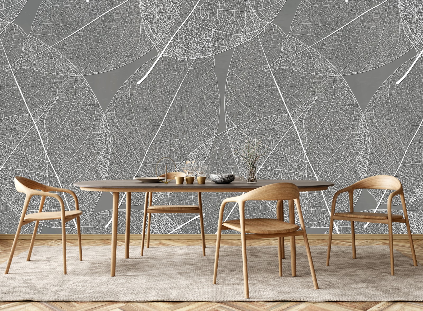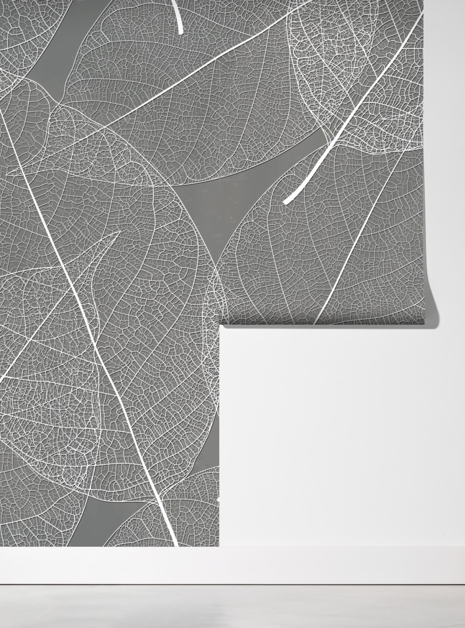 Fototapete feines blattadern-muster in grautönen – Wallnifity®