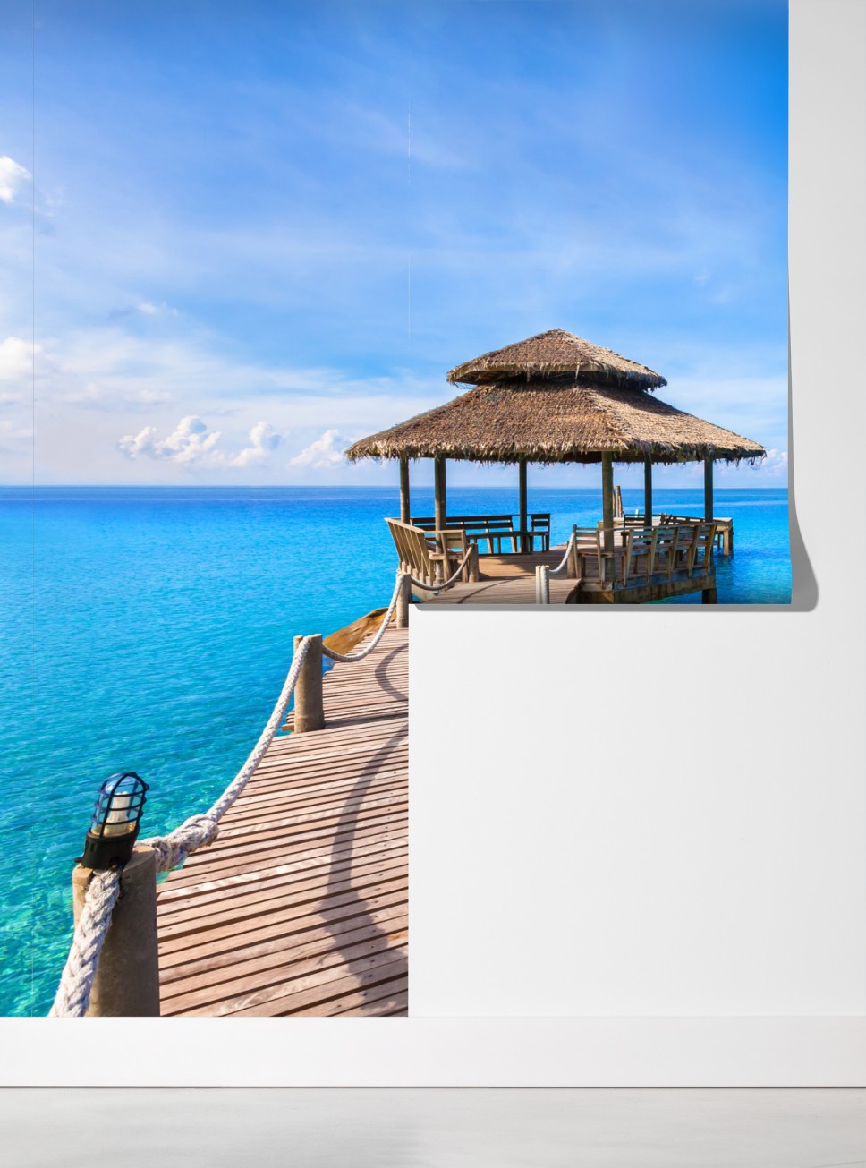 Fototapete tropischer steg über türkisfarbenem meer – Wallnifity®