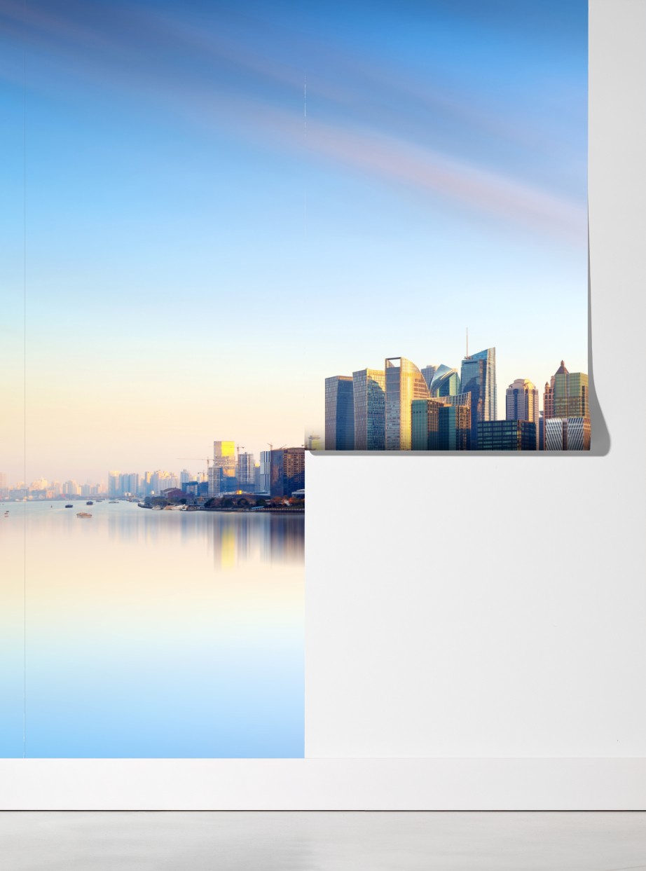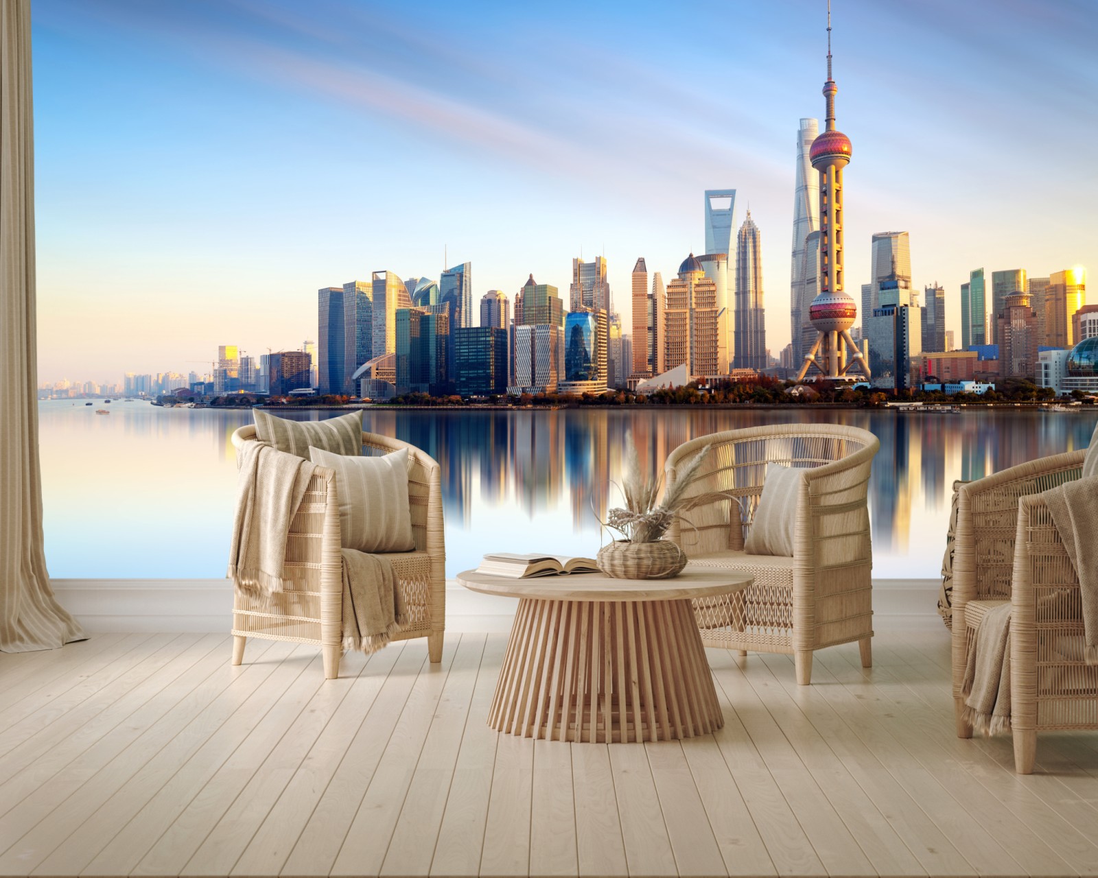 Fototapete Shanghai skyline spiegelung bei sonnenaufgang – Wallnifity®