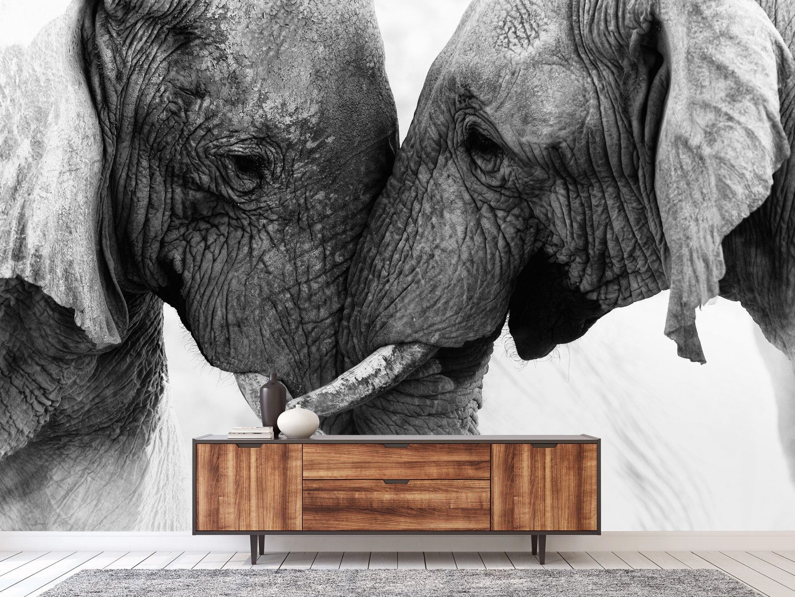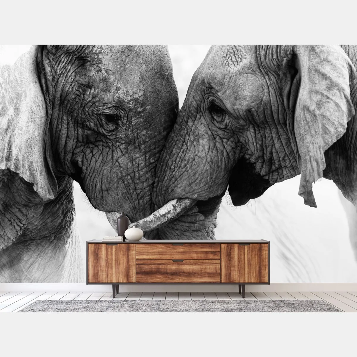Fototapete Elefanten umarmung schwarzweißes porträt