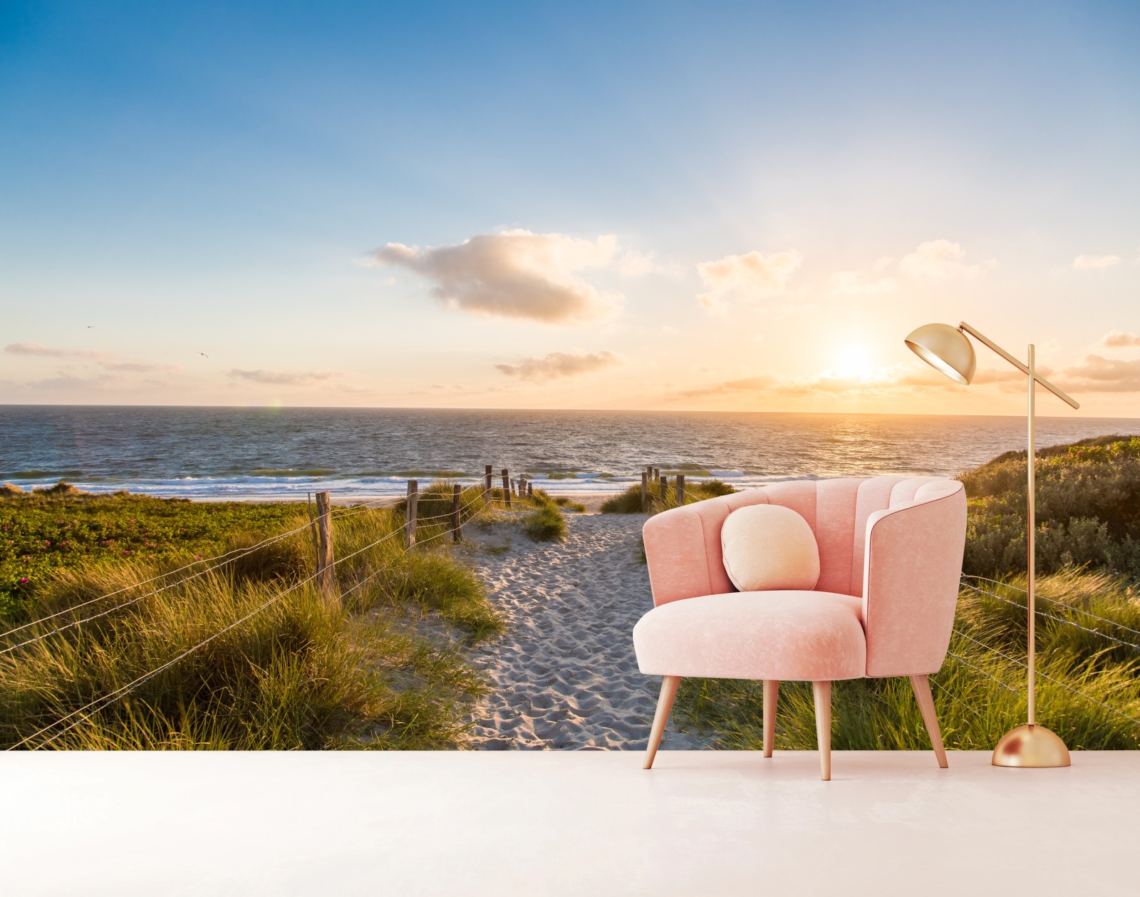 Fototapete Sonnenbeschienener strandweg zum meer