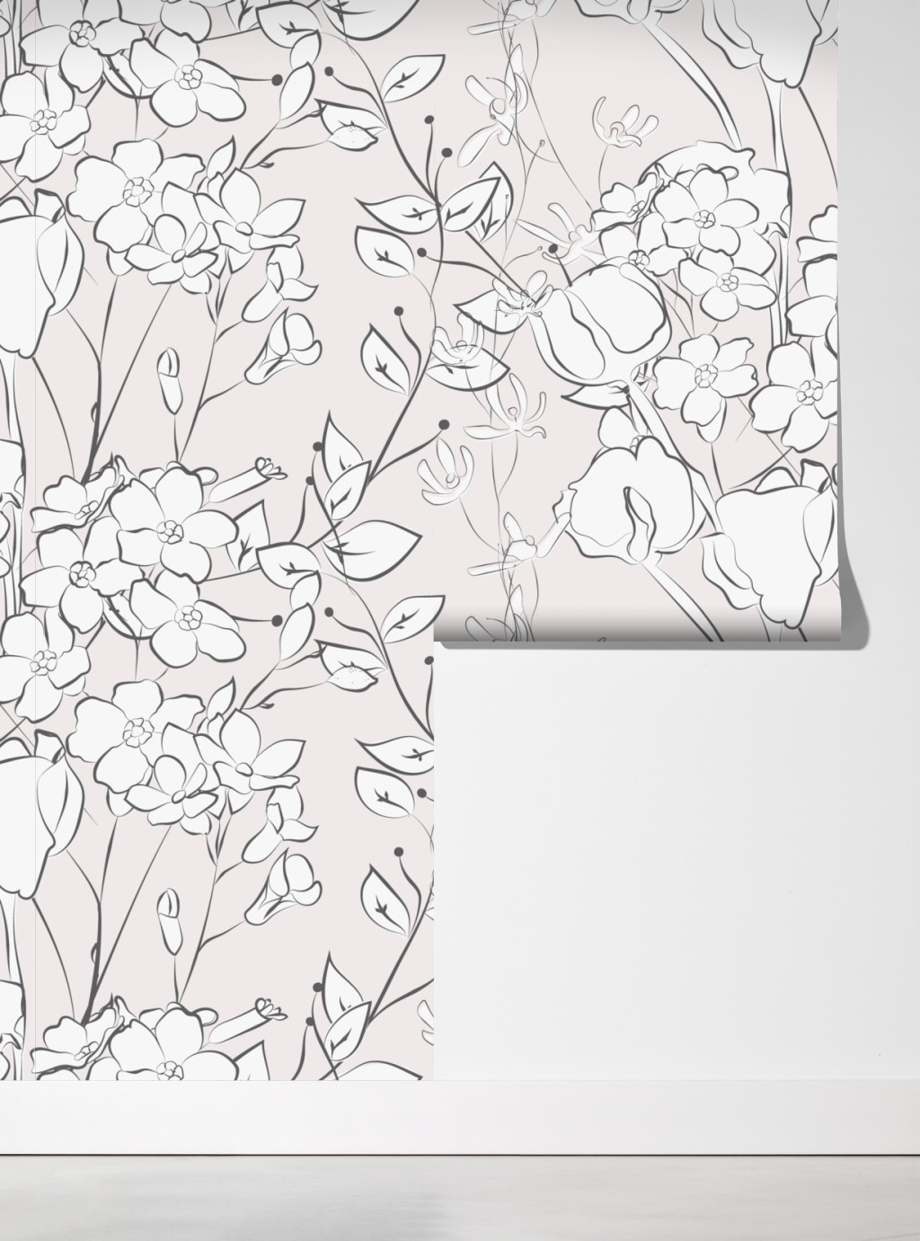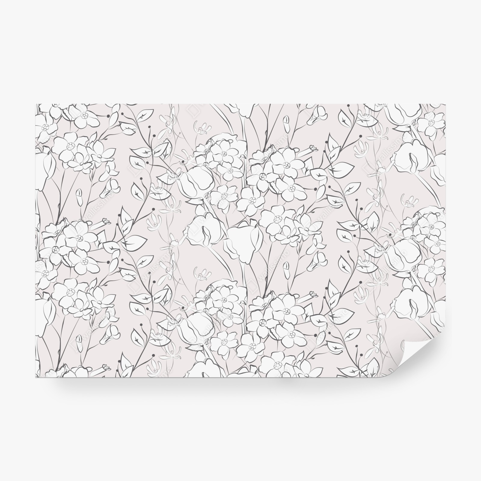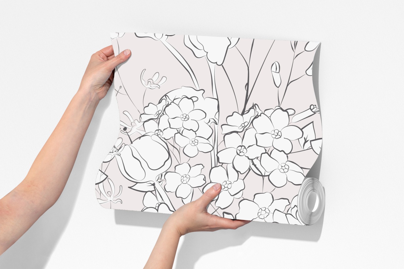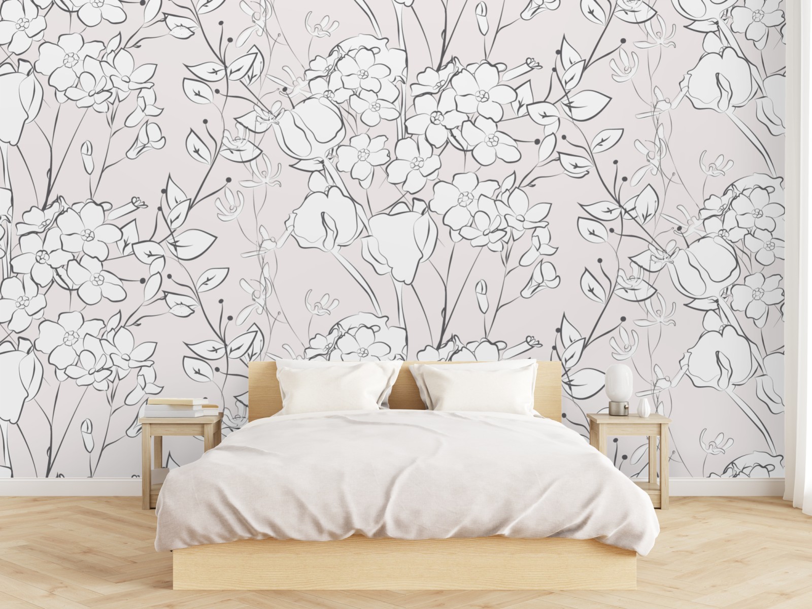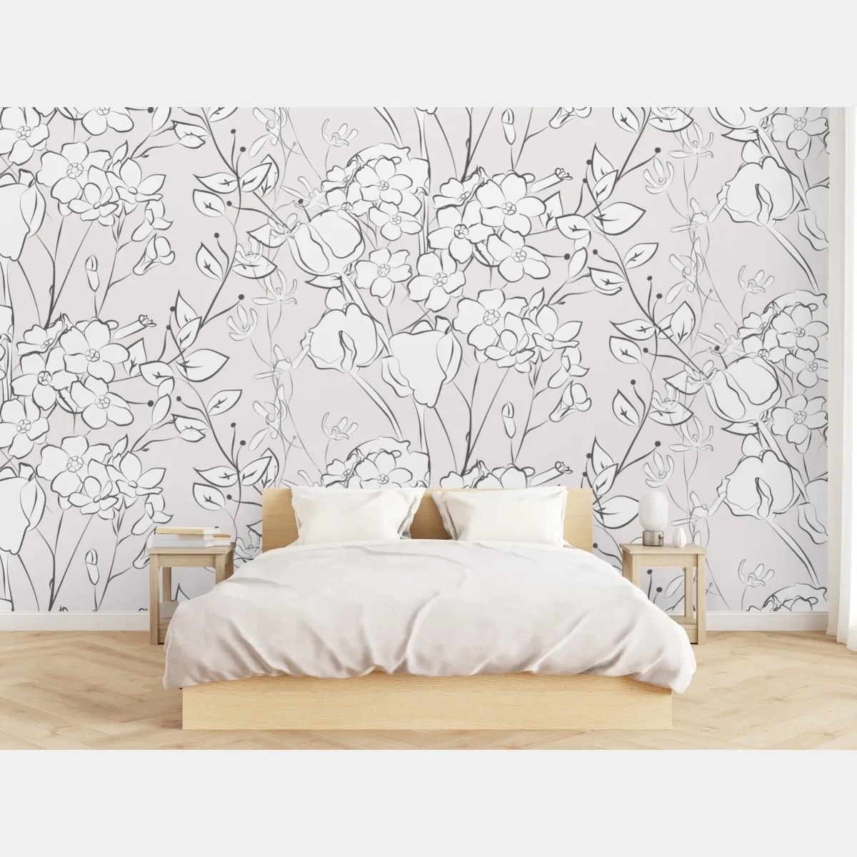 sanfte pastellblumen in zarter linienzeichnung schaffen einen beruhigenden hintergrund für moderne innenräume, ideal für schlafzimmer und gemütliche wohnbereiche.