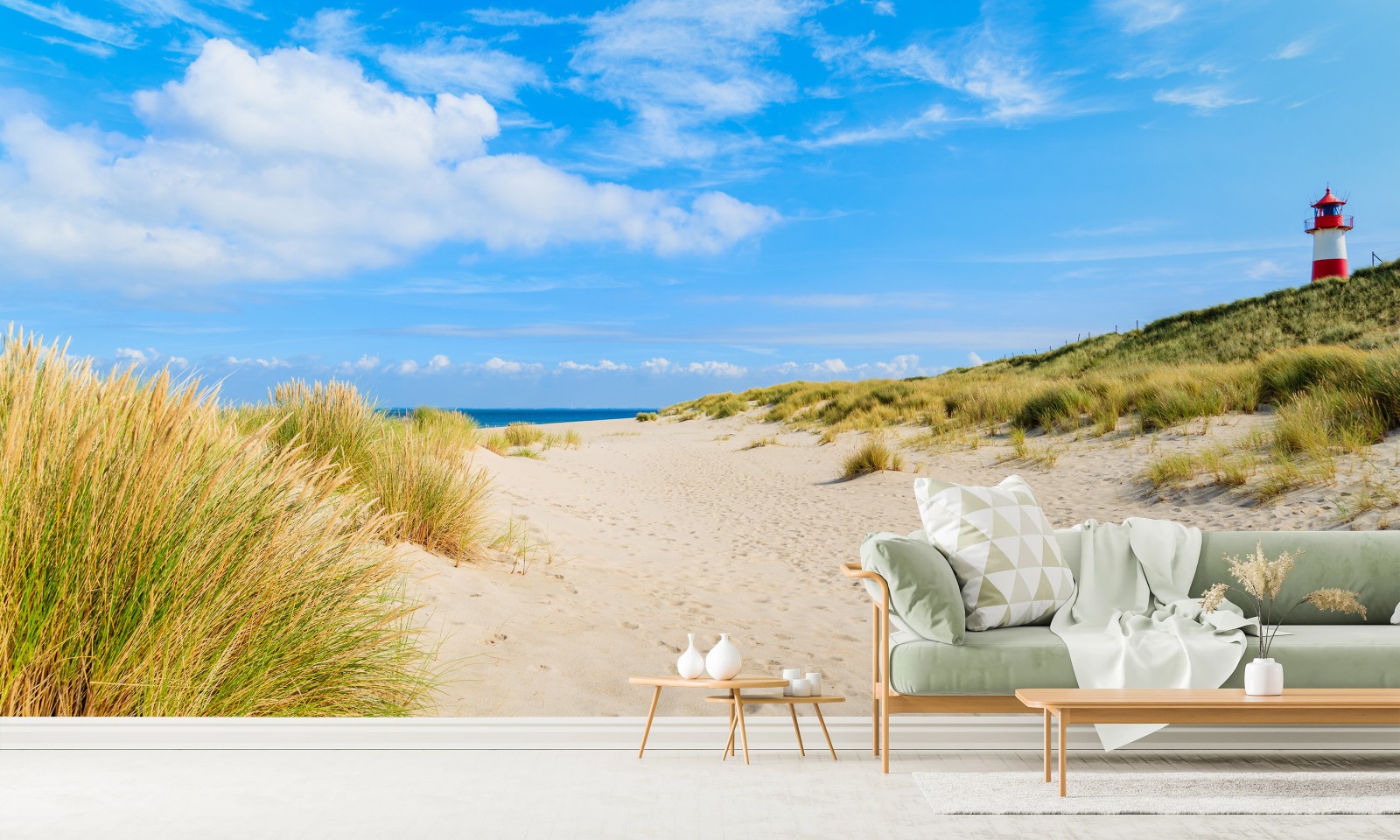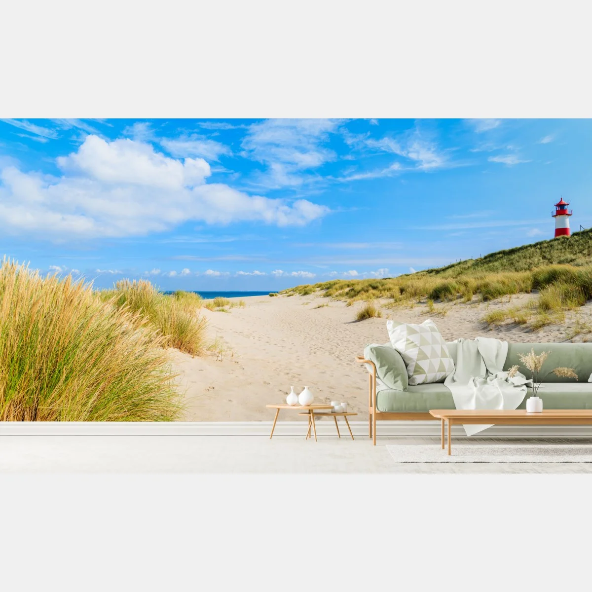 Fototapete Ruhige dünen Sylt mit leuchtturm