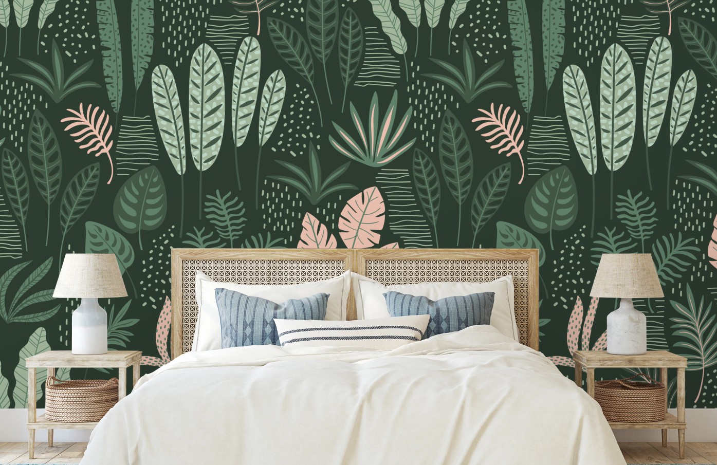 Fototapete Tropisches blättermuster in sanften grüntönen und rosa