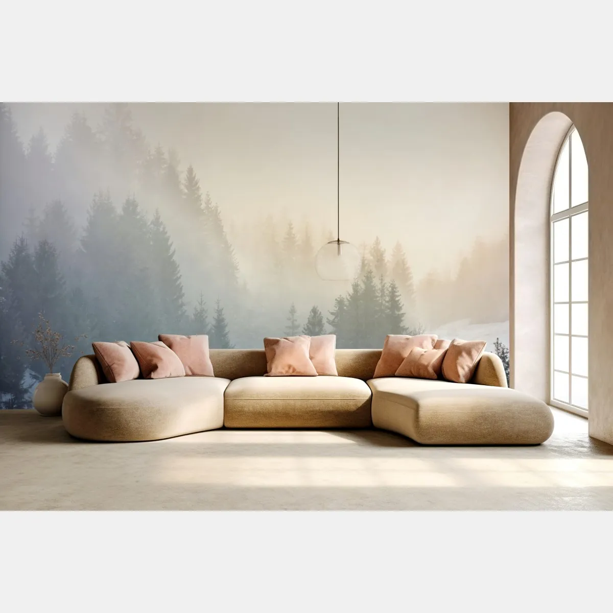 Morgendlicher Nebel durchzieht einen Winterfichtenwald und schafft eine ruhige, stimmungsvolle Szene, die jedem Raum natürliche Gelassenheit verleiht.
