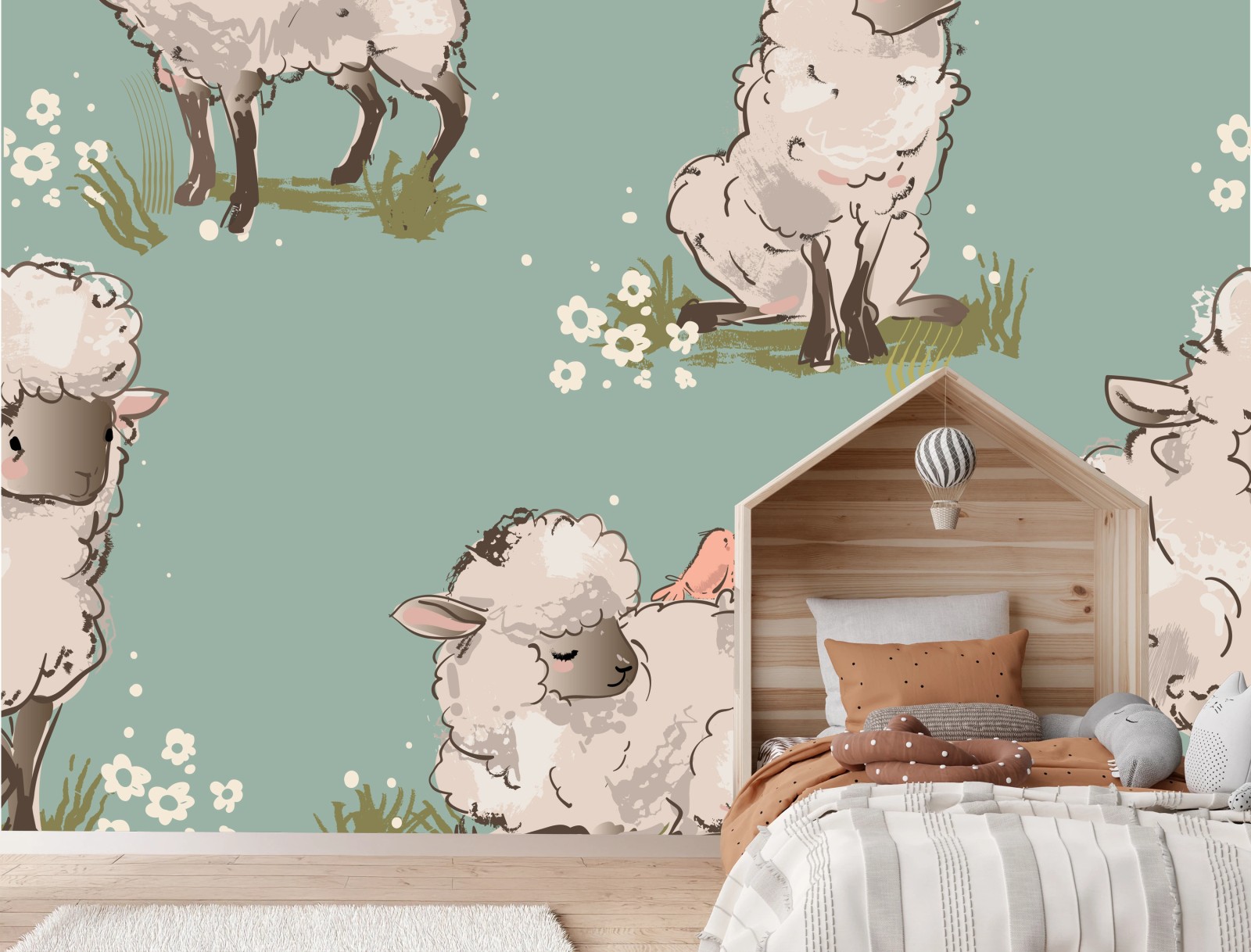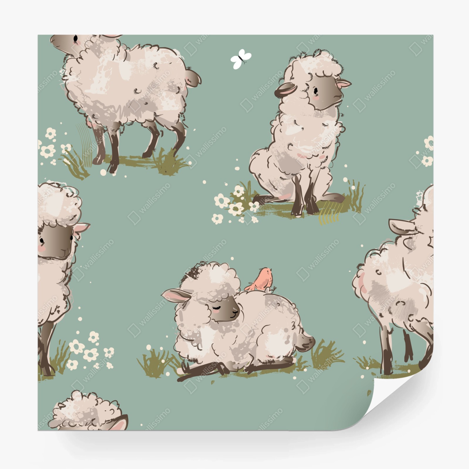 Fototapete Niedliche lämmer auf türkisfarbenem hintergrund