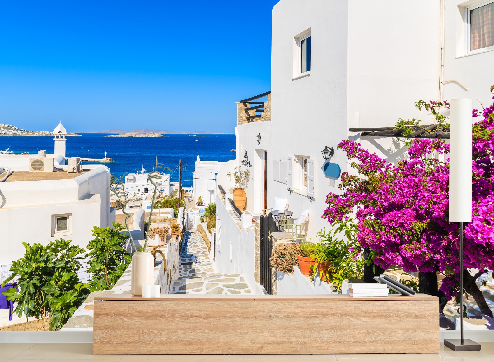 Fototapete Sonnige gasse in Mykonos