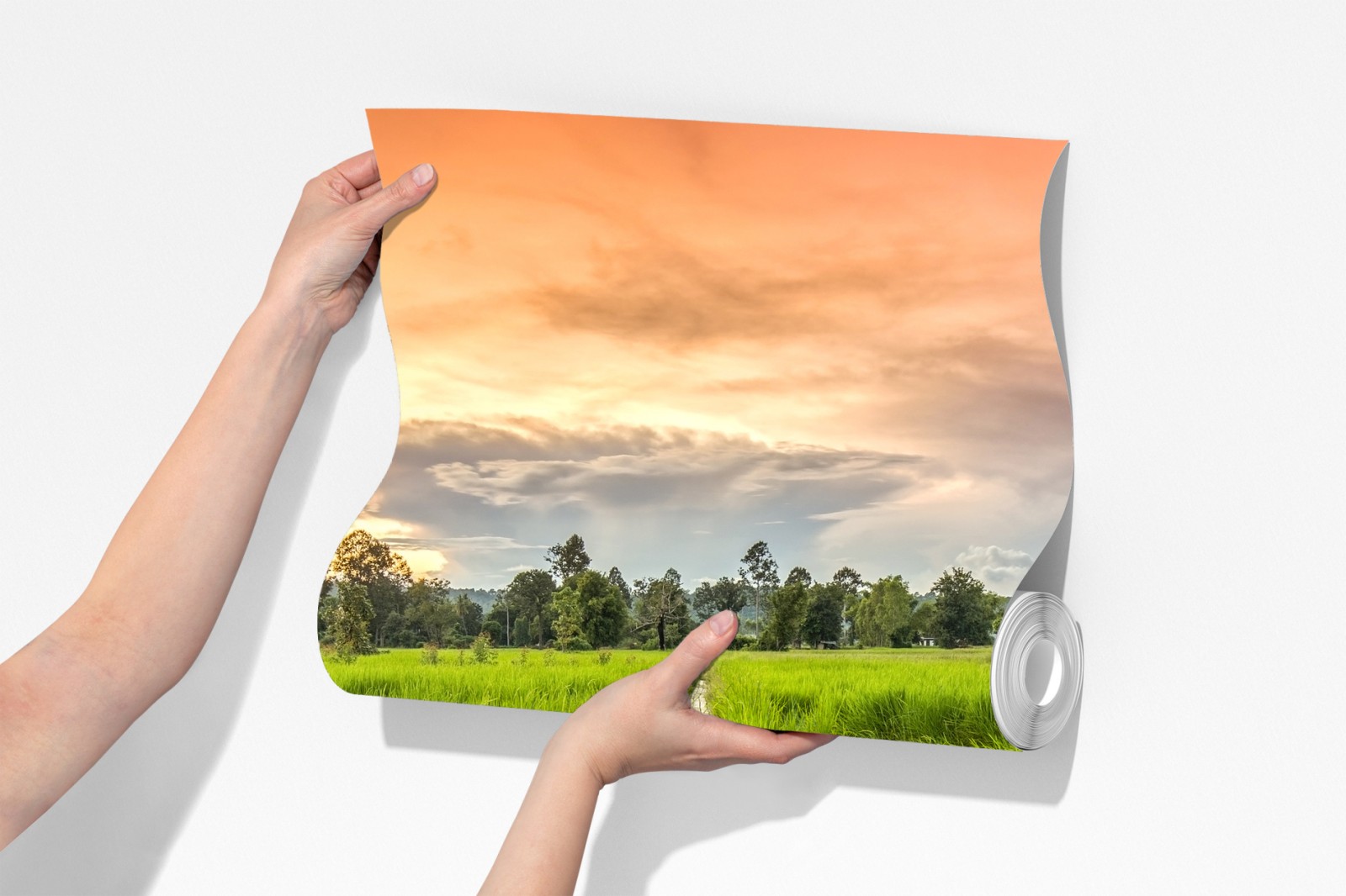 Fototapete sonnenuntergang über einer hölzernen brücke in Khonburi – Wallnifity®