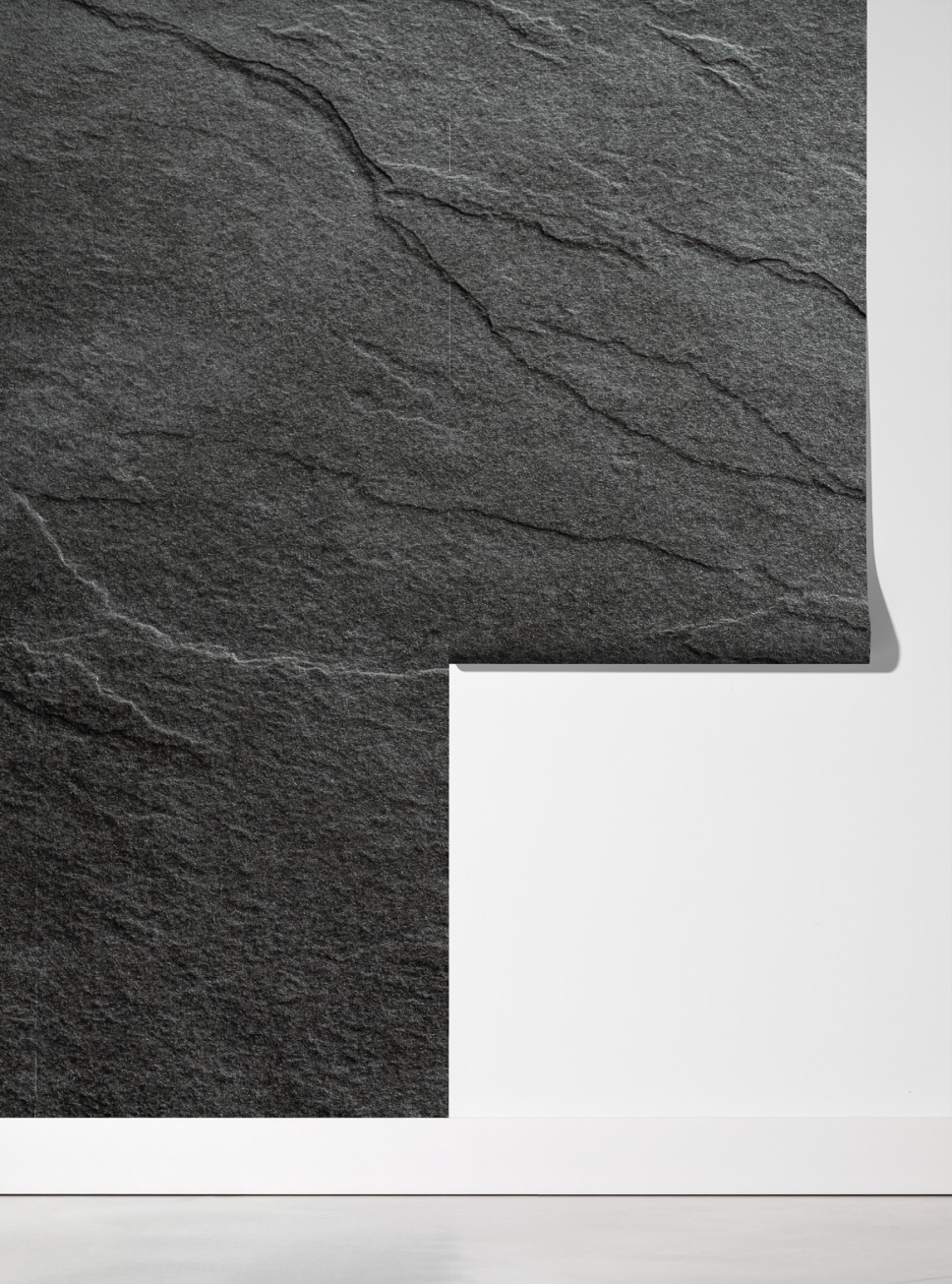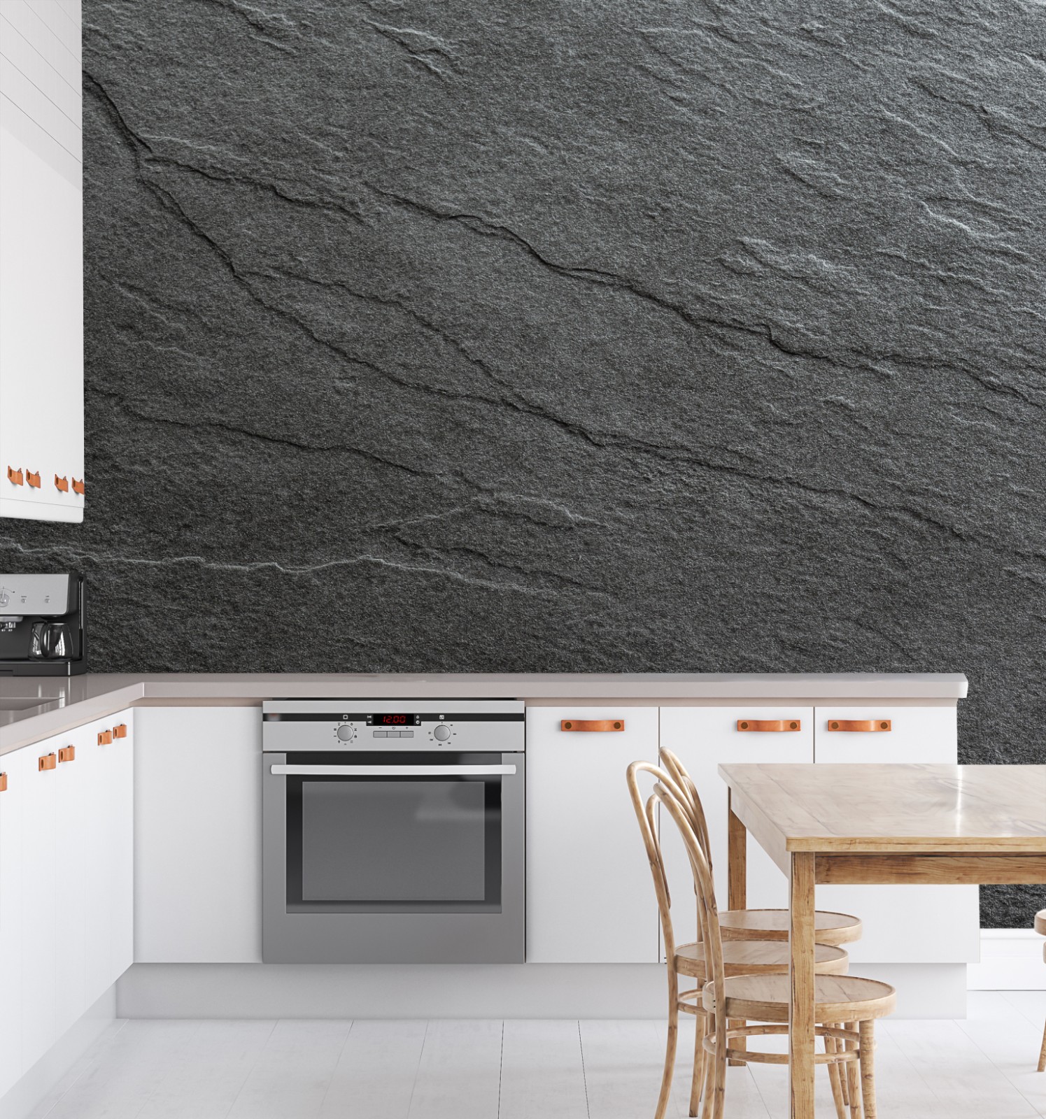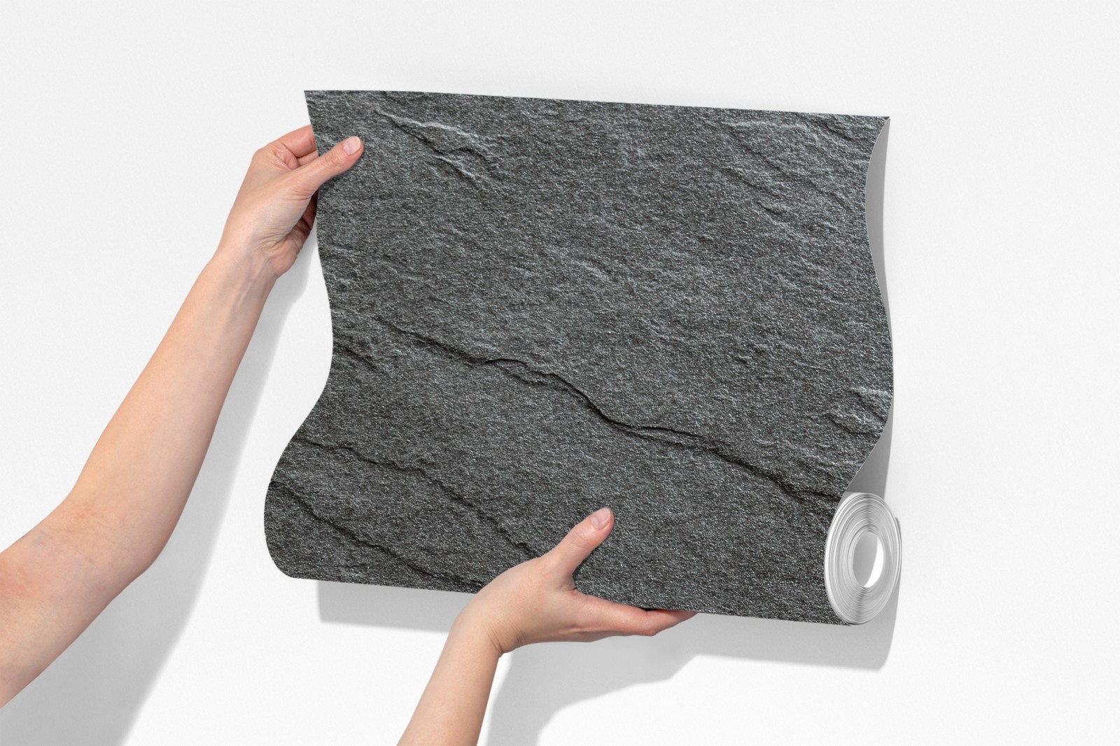 Bringen Sie einen robusten, industriellen Akzent in Ihre Räume mit dieser tiefen, dunklen Schiefertextur, die natürliche Tiefe und Struktur bietet.