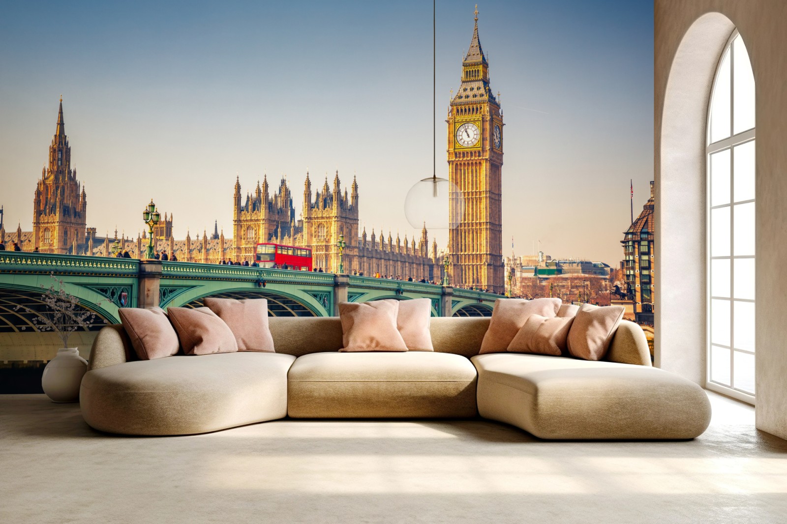 Fototapete Sonnige ansicht von Big Ben und Westminster Bridge, London