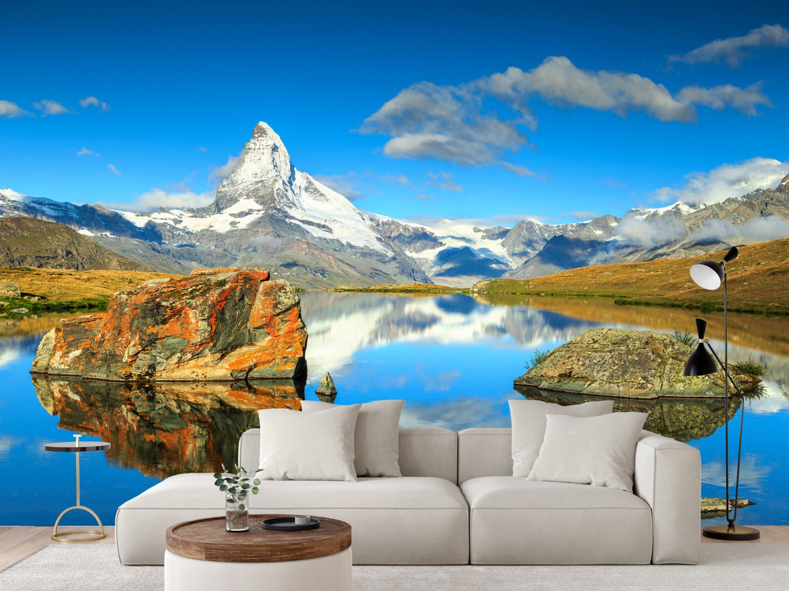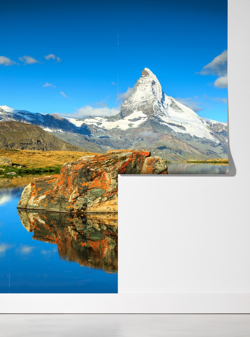 Fototapete spiegelung des Matterhorns über einem alpinen see – Wallnifity®