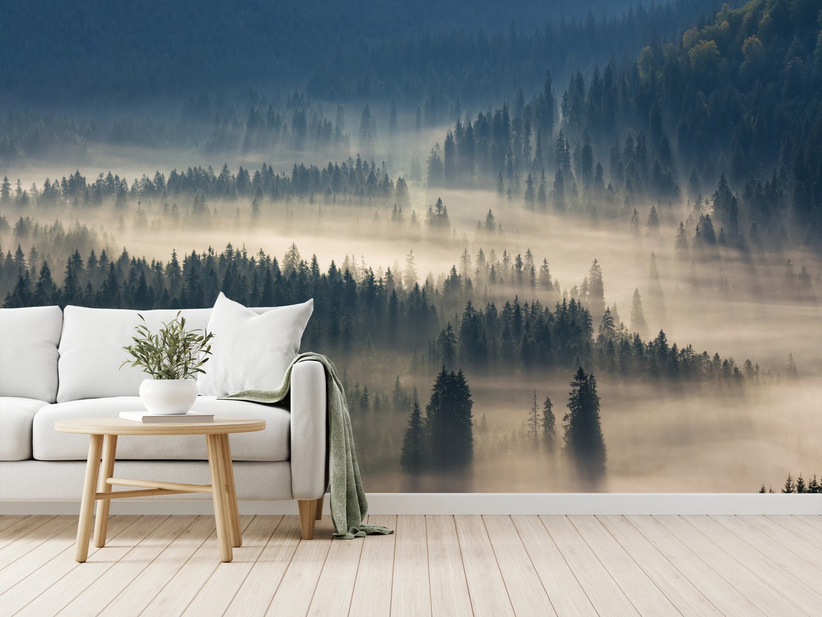 Fototapete Nebliger nadelwald im morgengrauen
