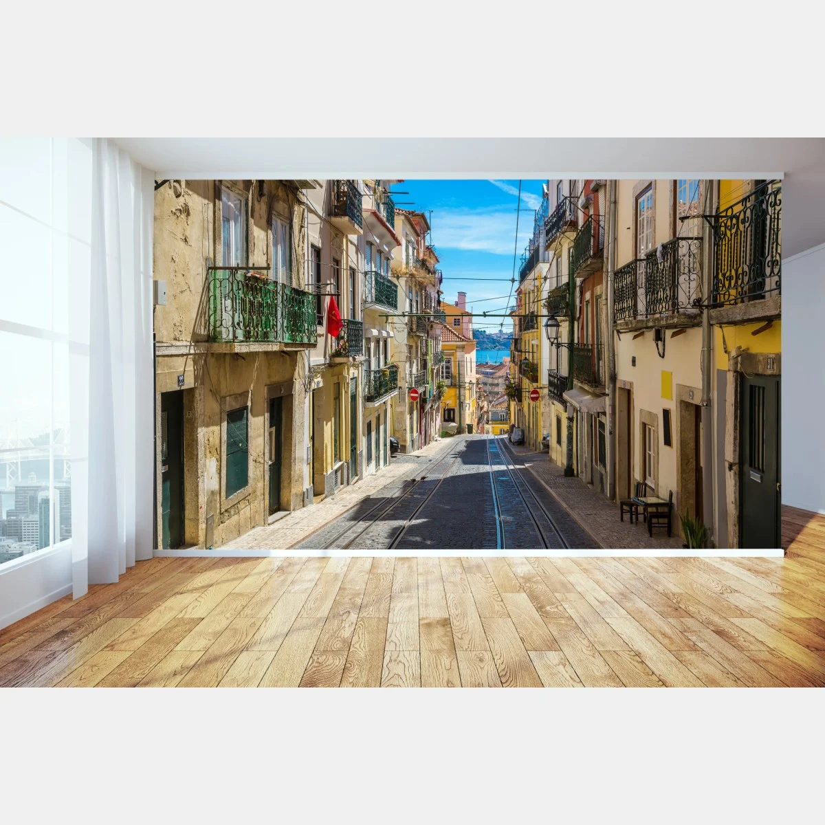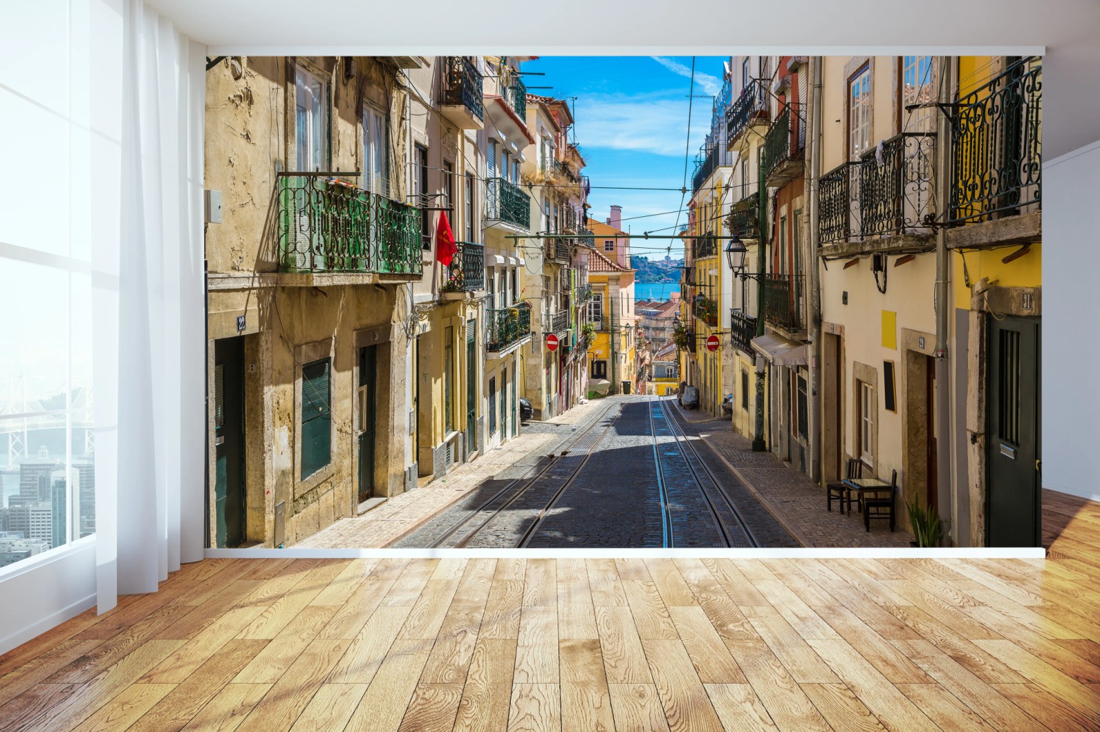 Fototapete Alte straße in Lissabon an einem sommerlichen tag