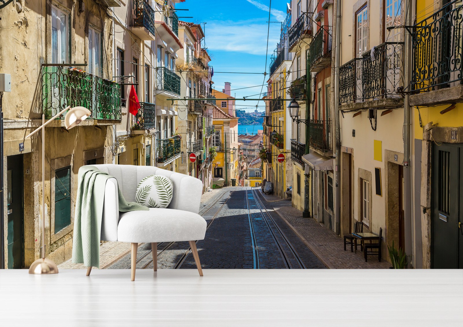 Fototapete Alte straße in Lissabon an einem sommerlichen tag