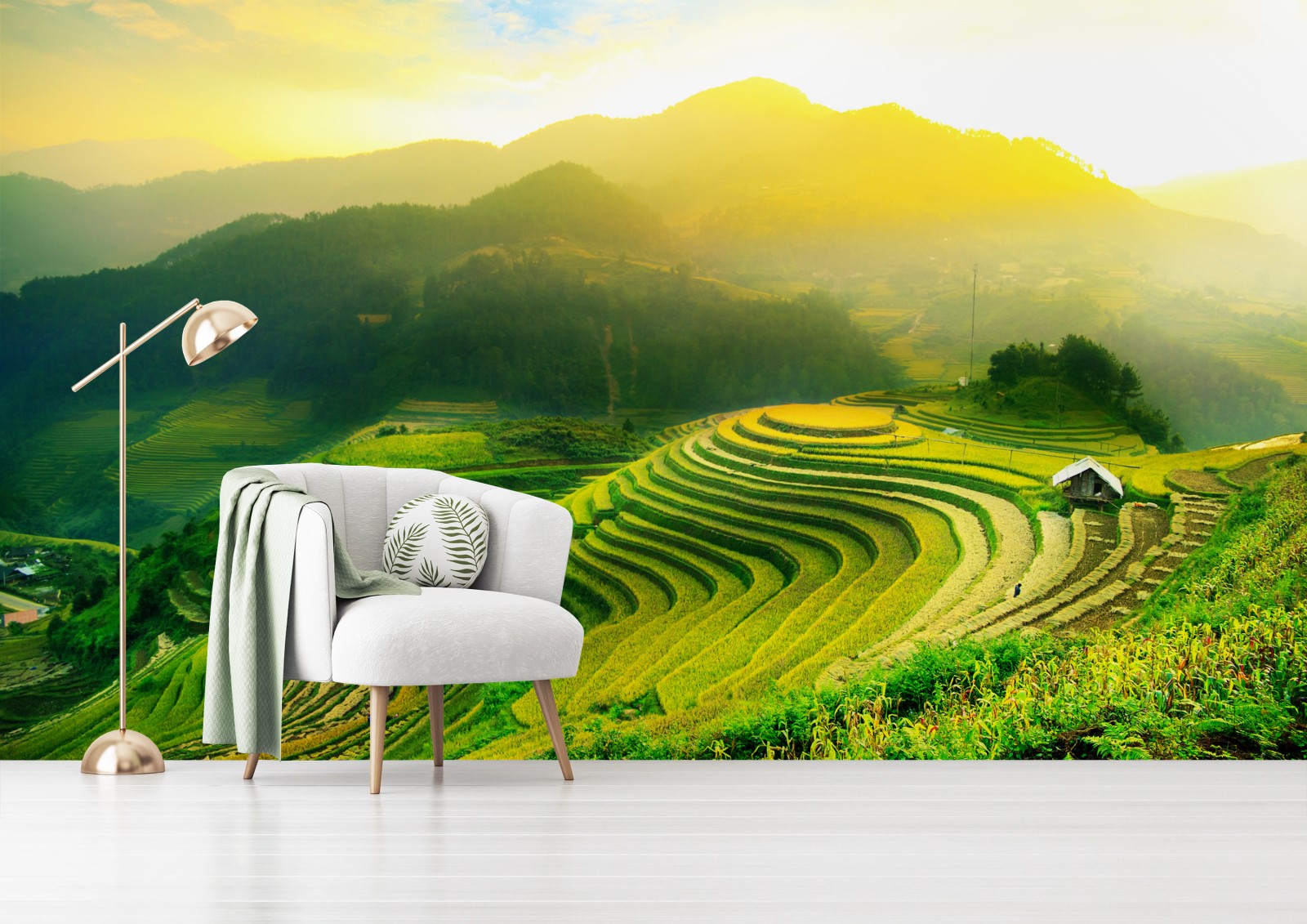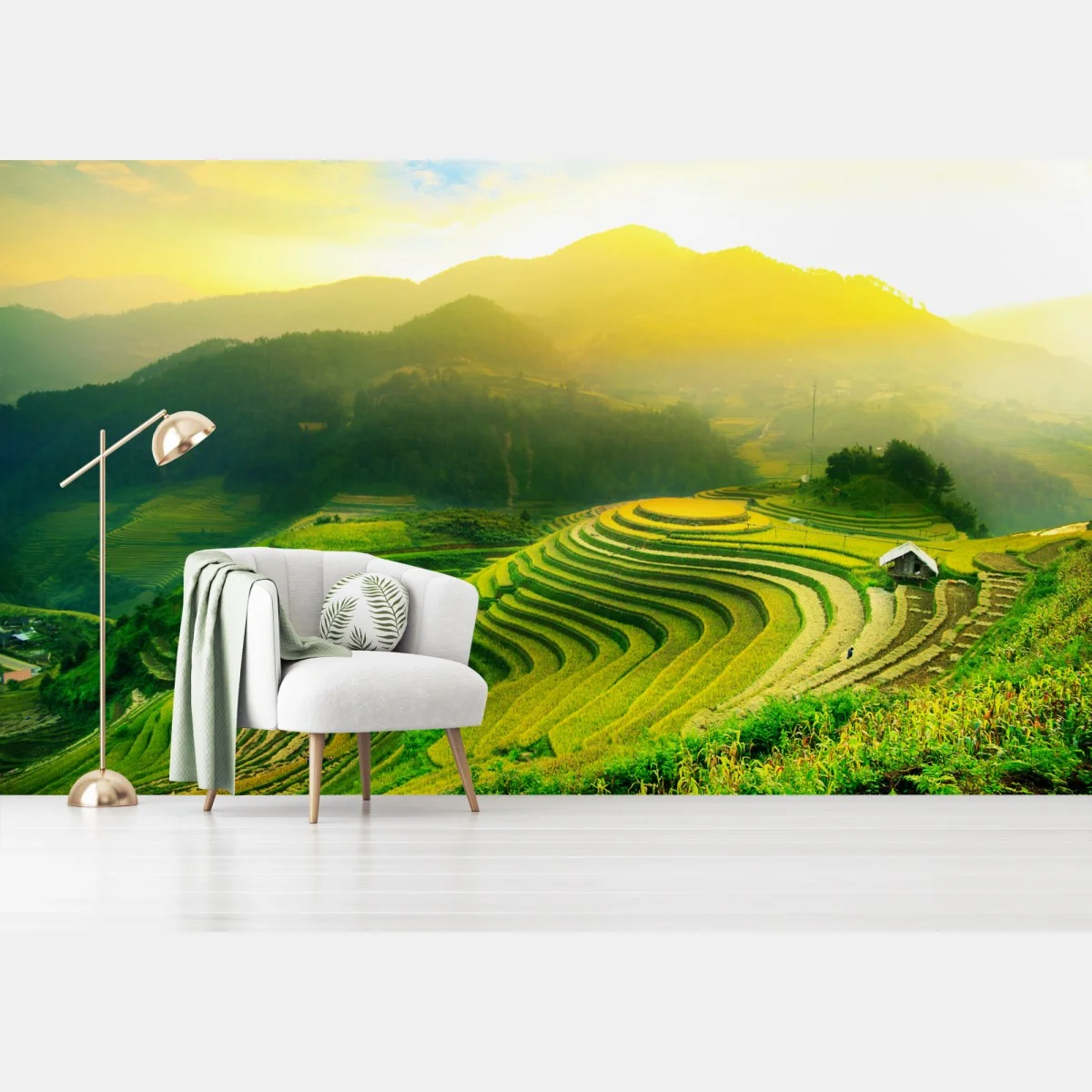 Fototapete Goldene reisterrassen im morgenlicht