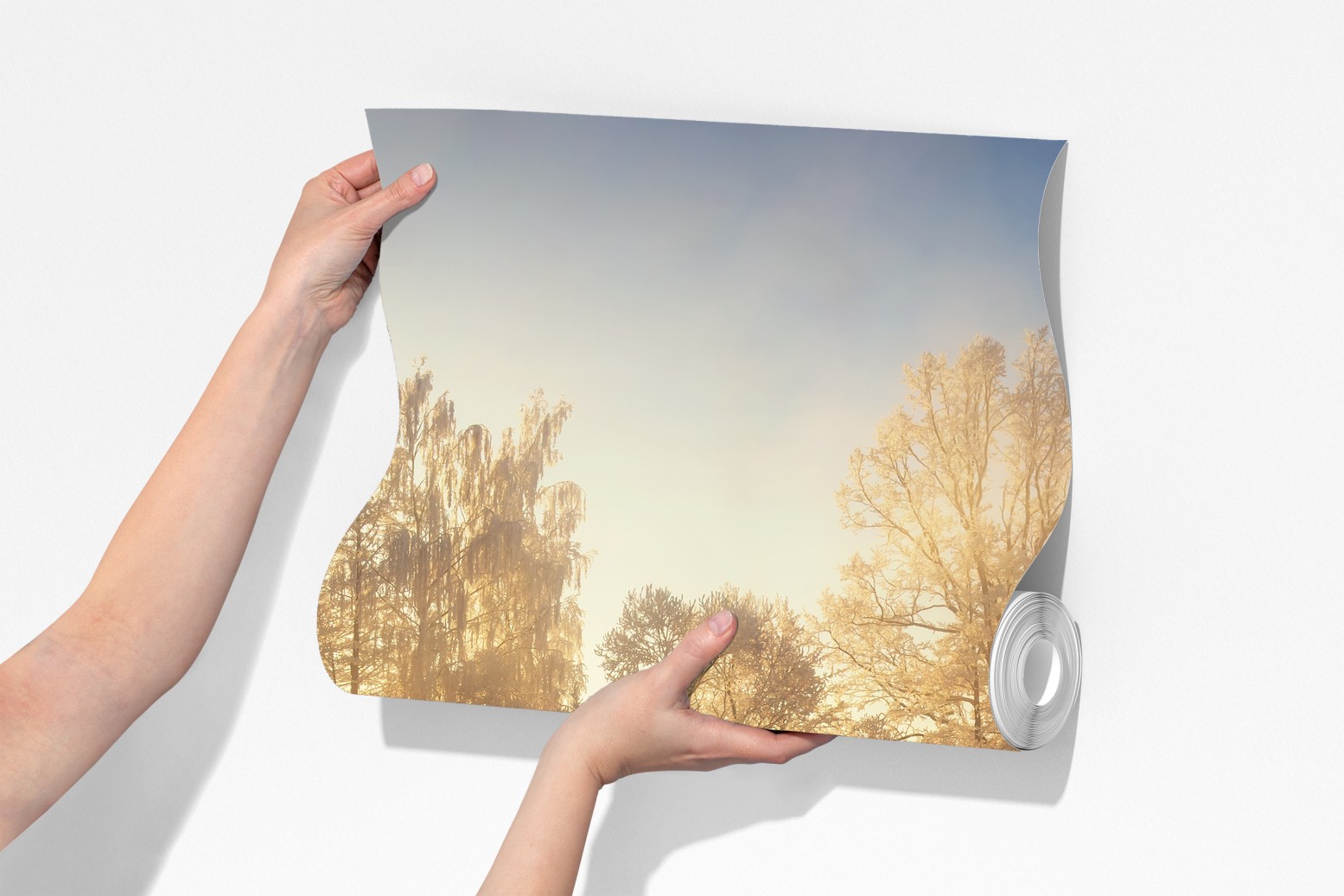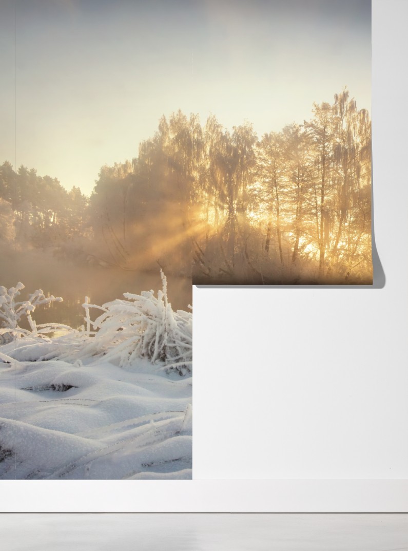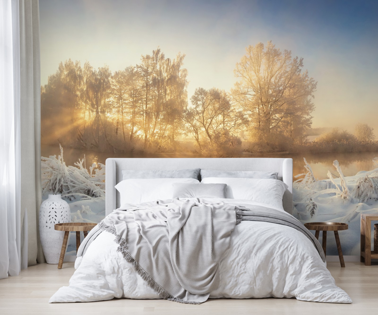 Fototapete goldener wintersonnenaufgang über dem frostigen fluss – Wallnifity®