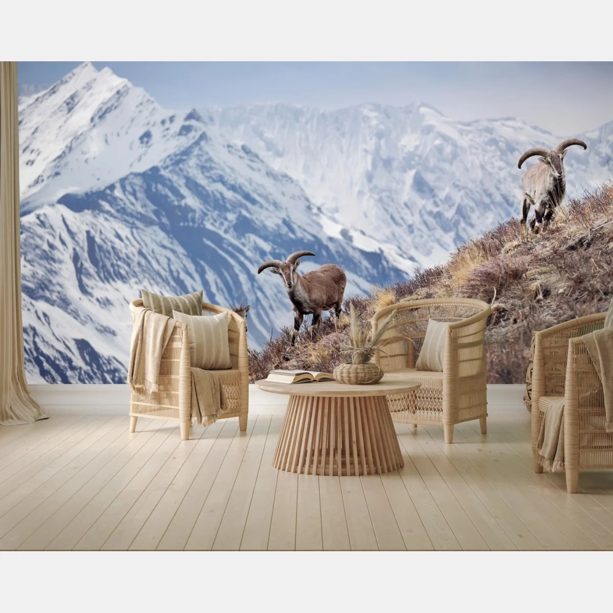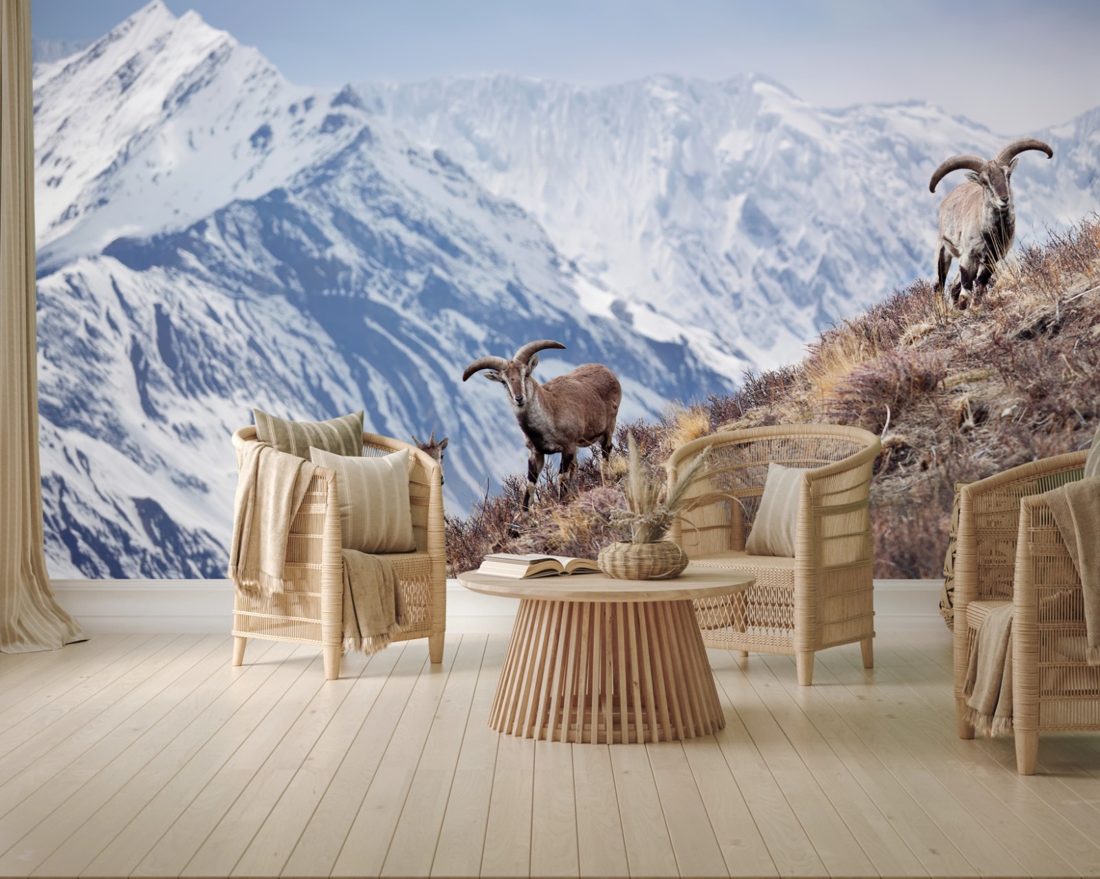 Fototapete Wilde blaue schafe an einem hang im Himalaya, Manang, Nepal