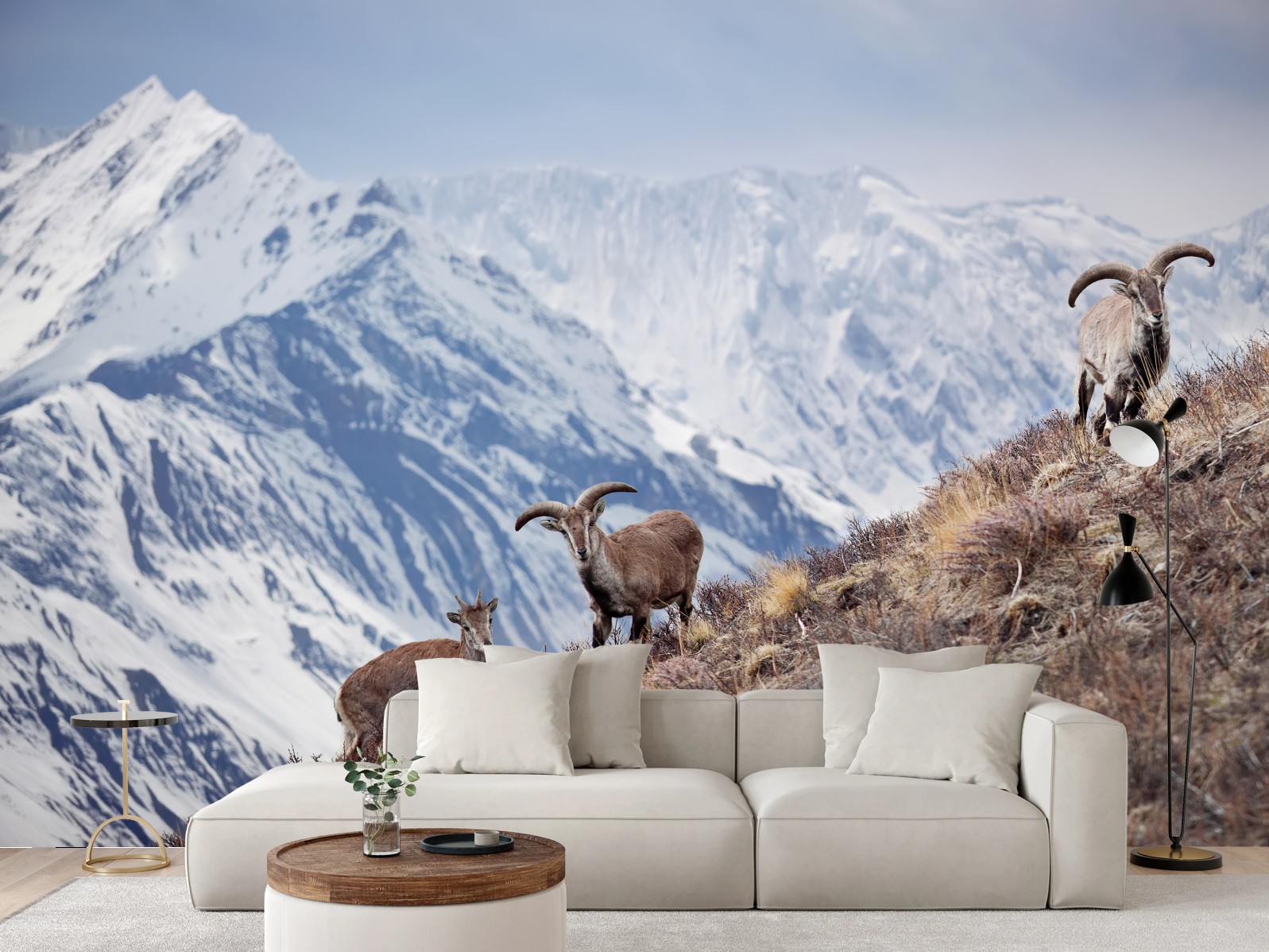 Fototapete Wilde blaue schafe an einem hang im Himalaya, Manang, Nepal
