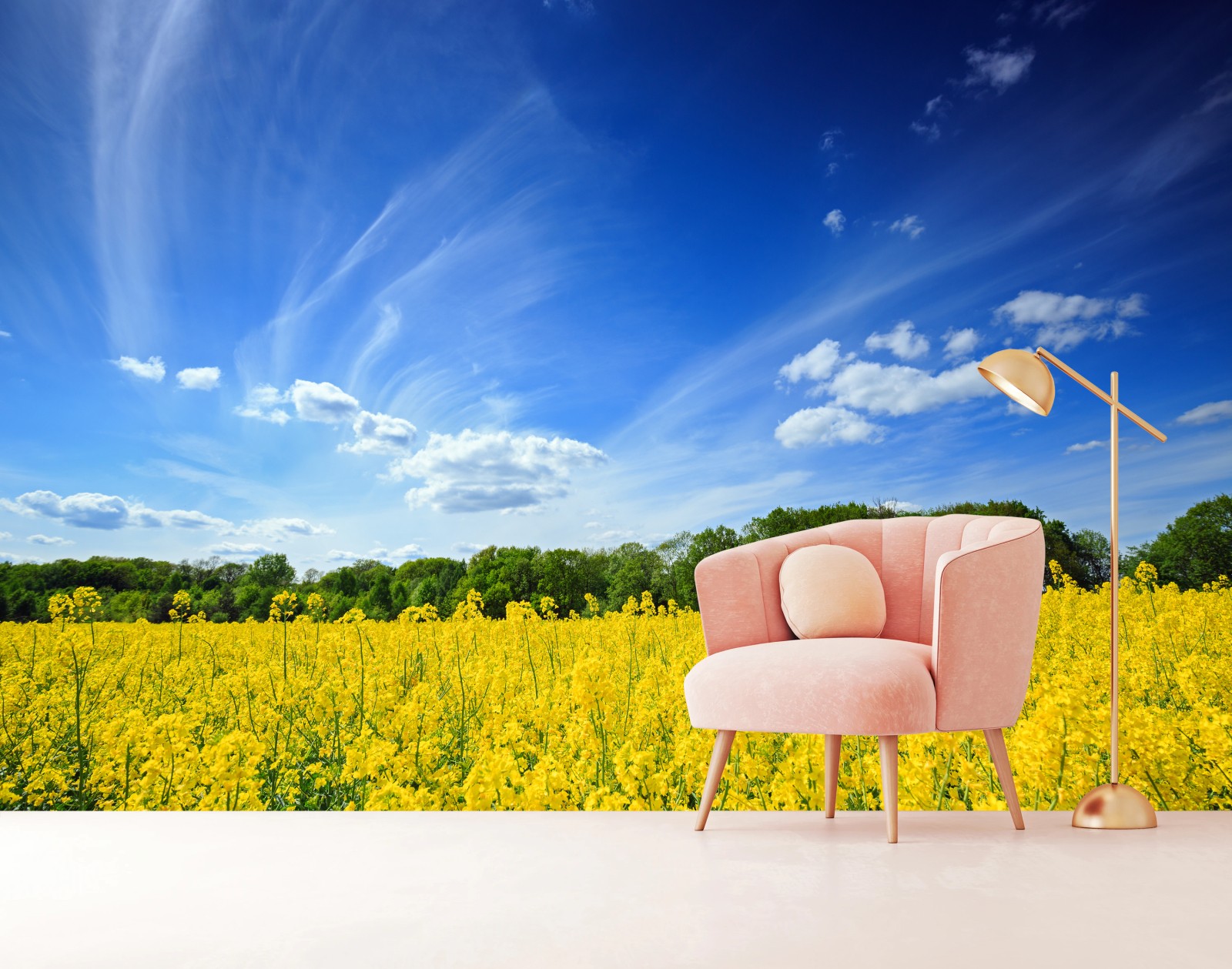 Fototapete Polnisches rapsfeld unter blauem himmel
