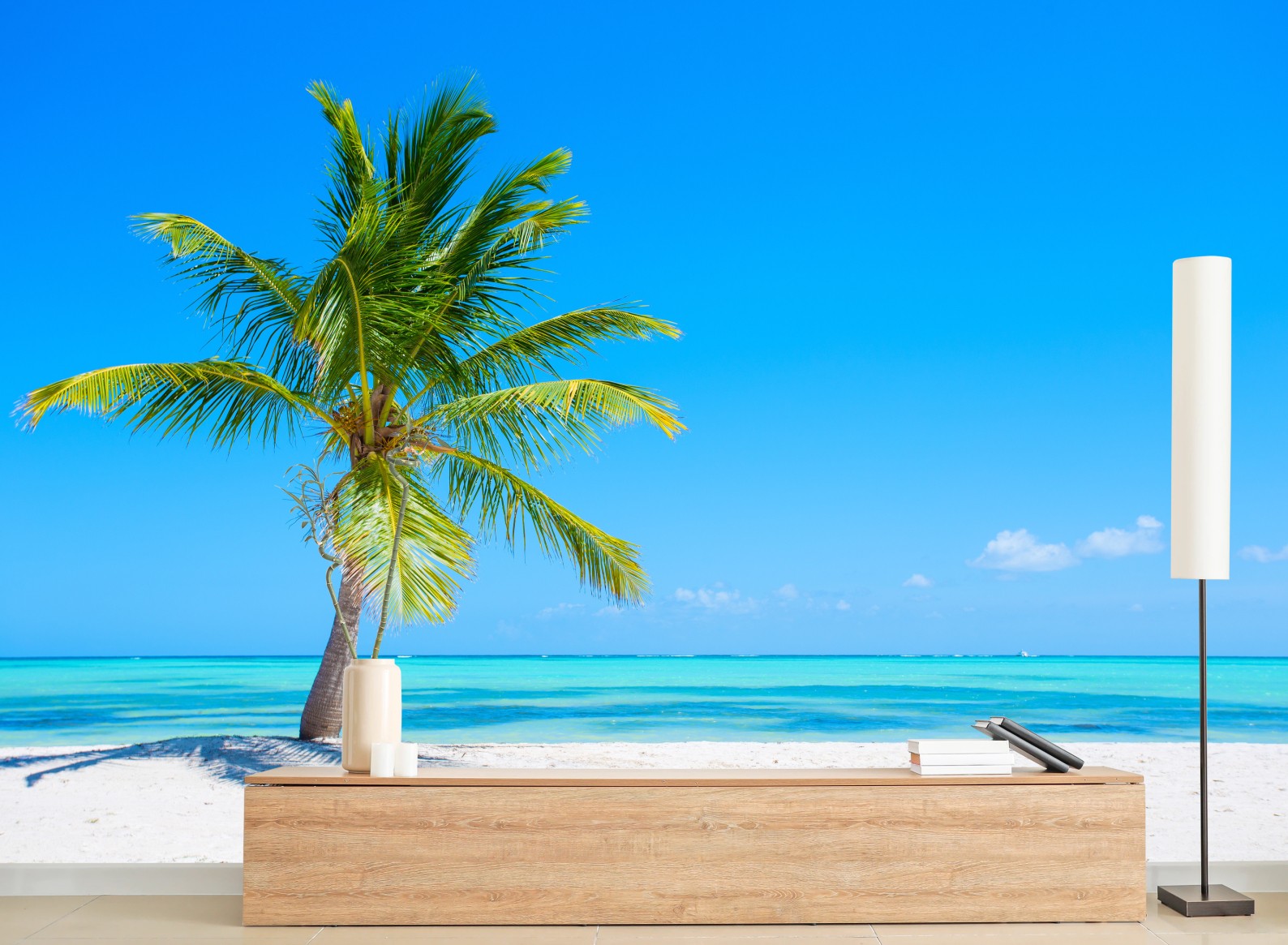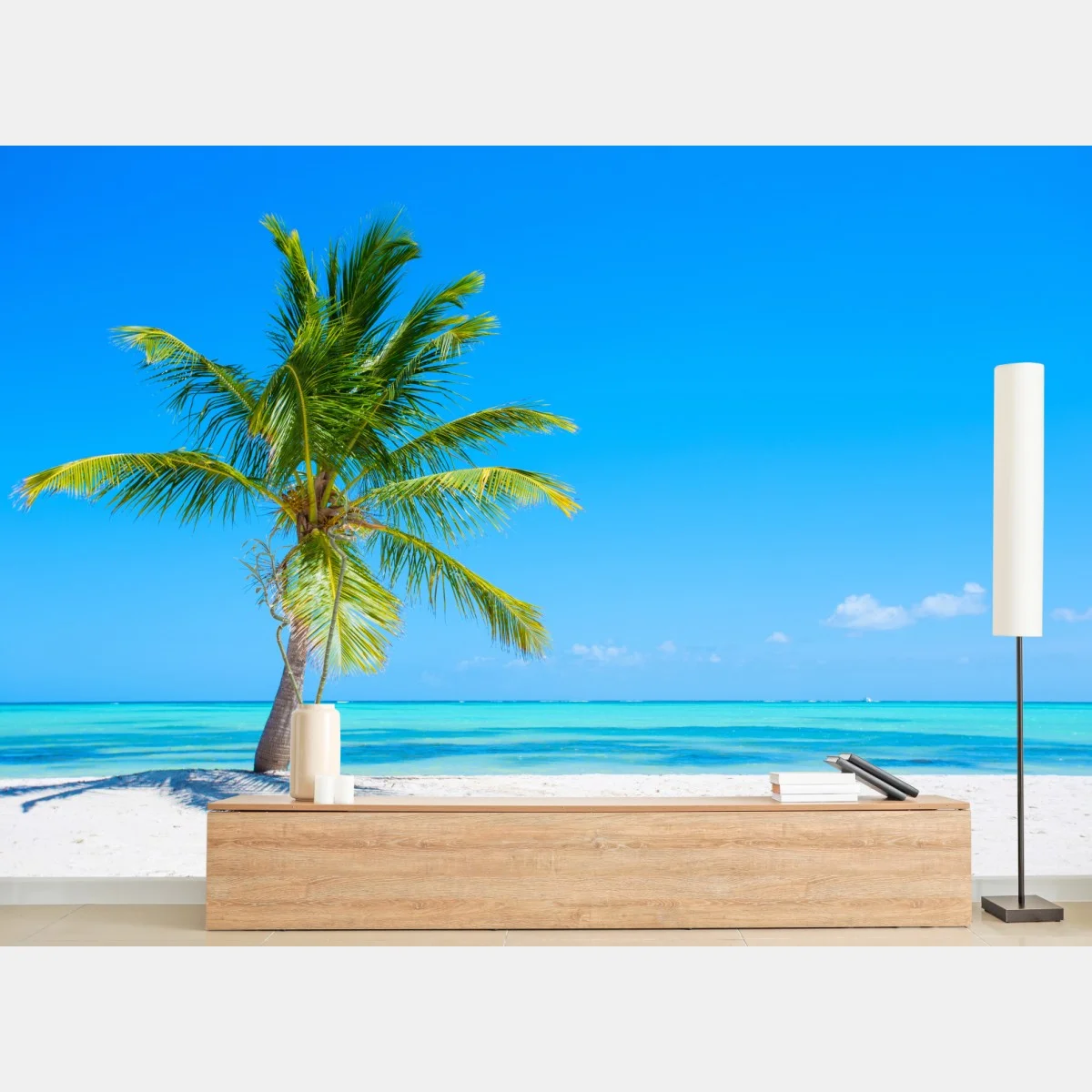 Fototapete Tropische palme am weißen sandstrand
