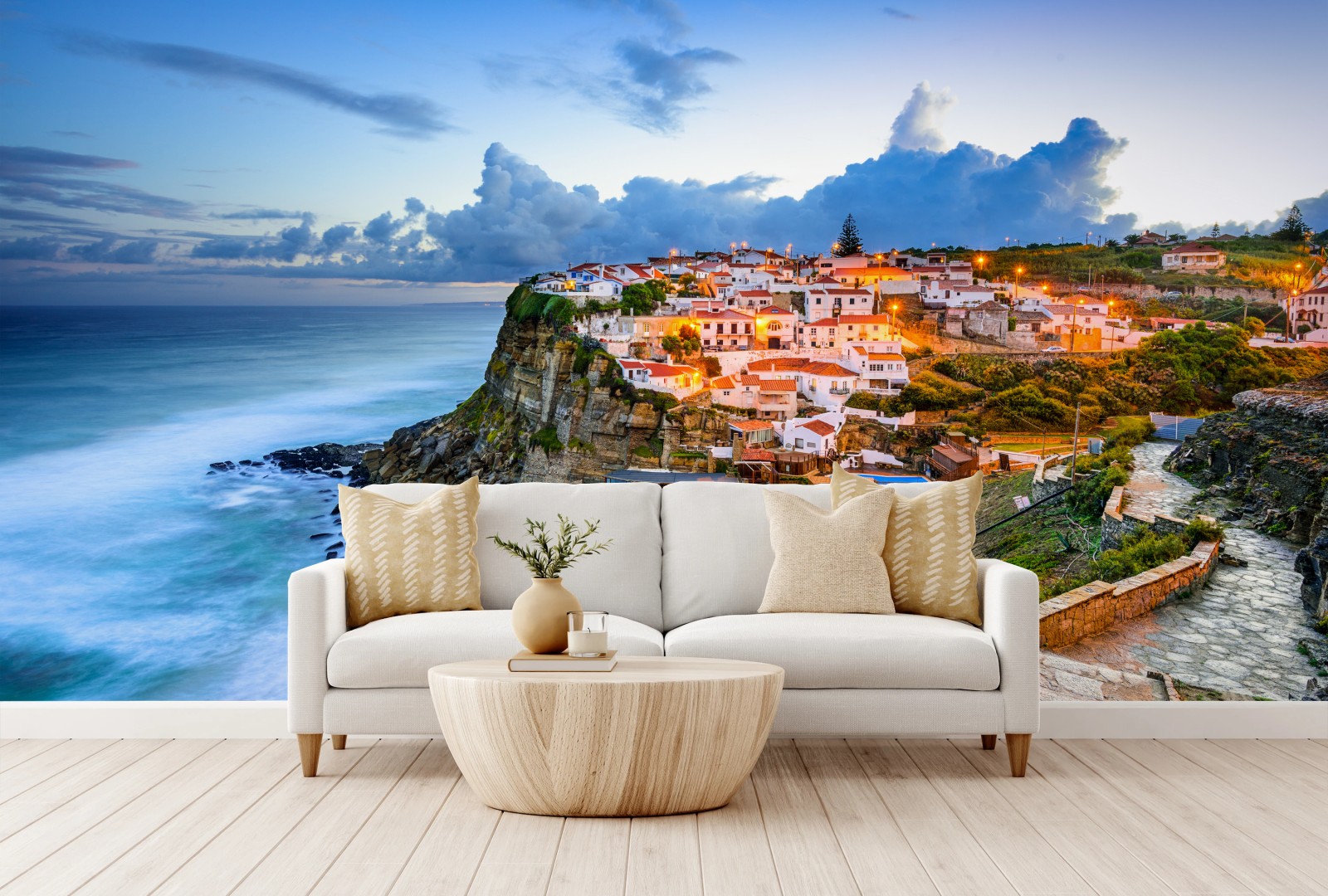 Fototapete Azenhas do Mar küstendorf auf der klippe, Portugal