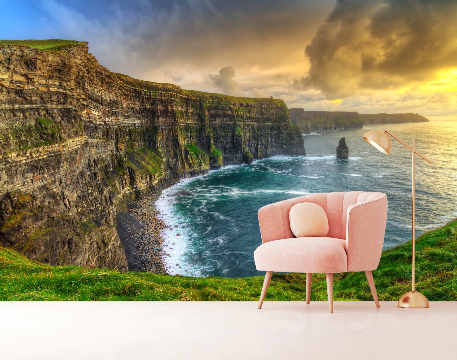 Fototapete Dramatische küstenklippen bei sonnenuntergang