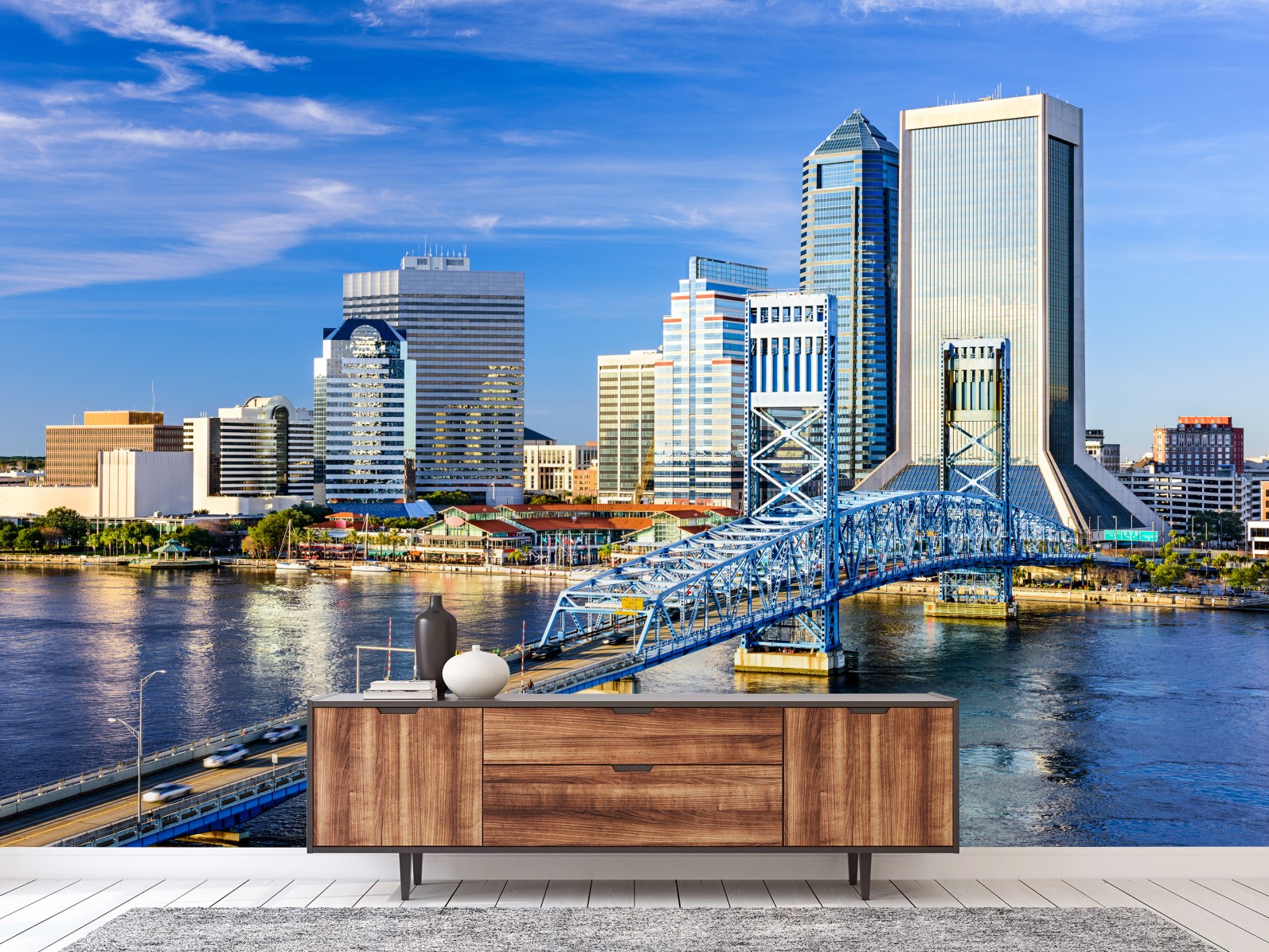 Fototapete Jacksonville skyline mit blauem brücke