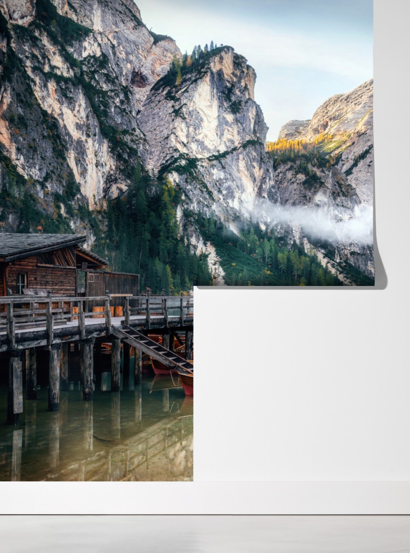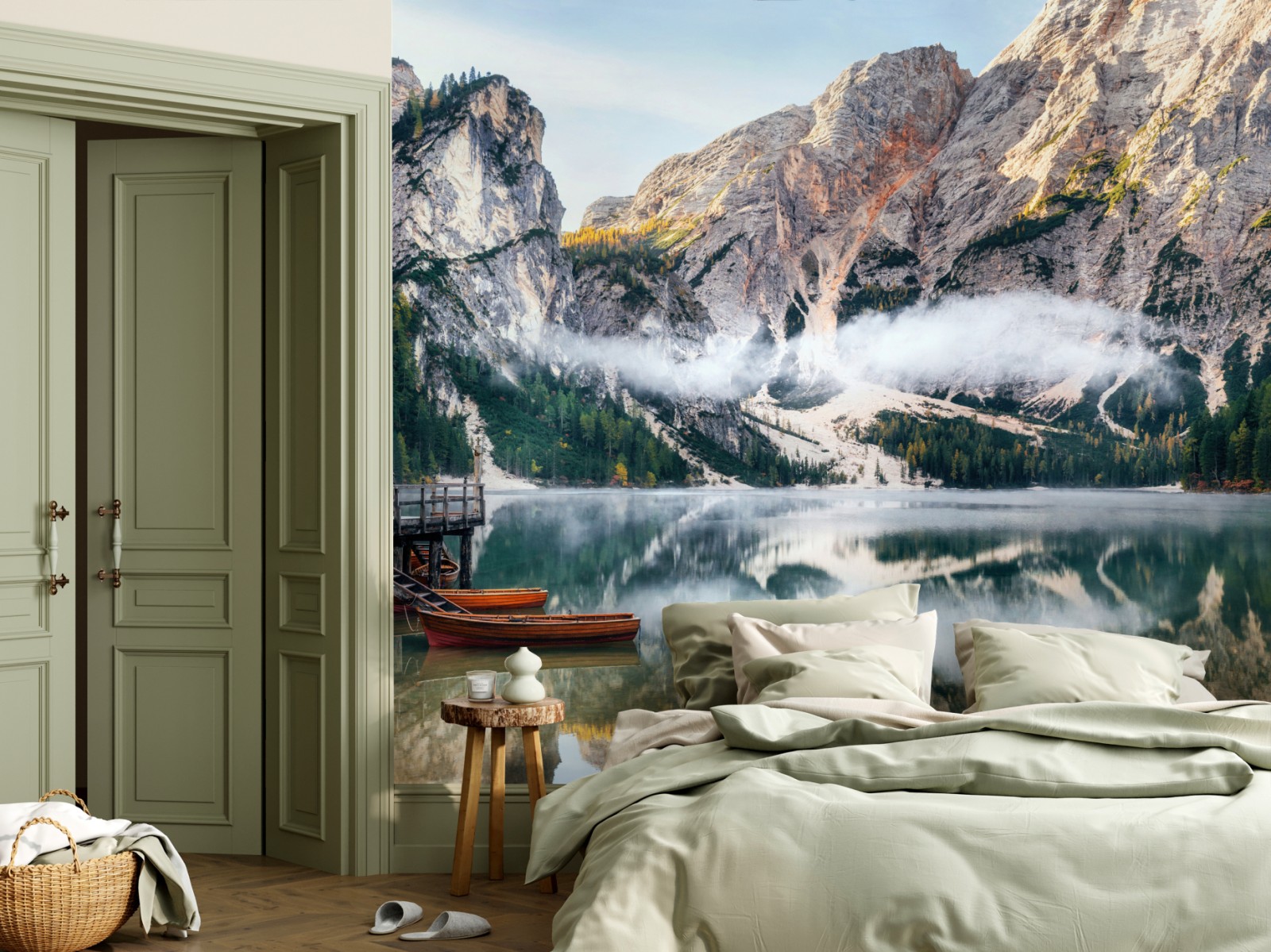 Fototapete nebliger alpensee mit spiegelung – Wallnifity®