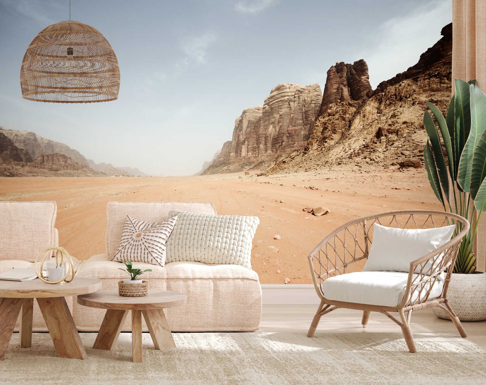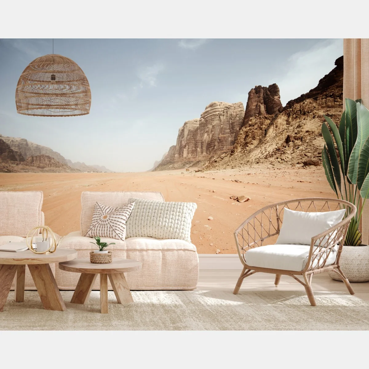 Fototapete Weites wüstenpanorama in Wadi Rum, Jordanien