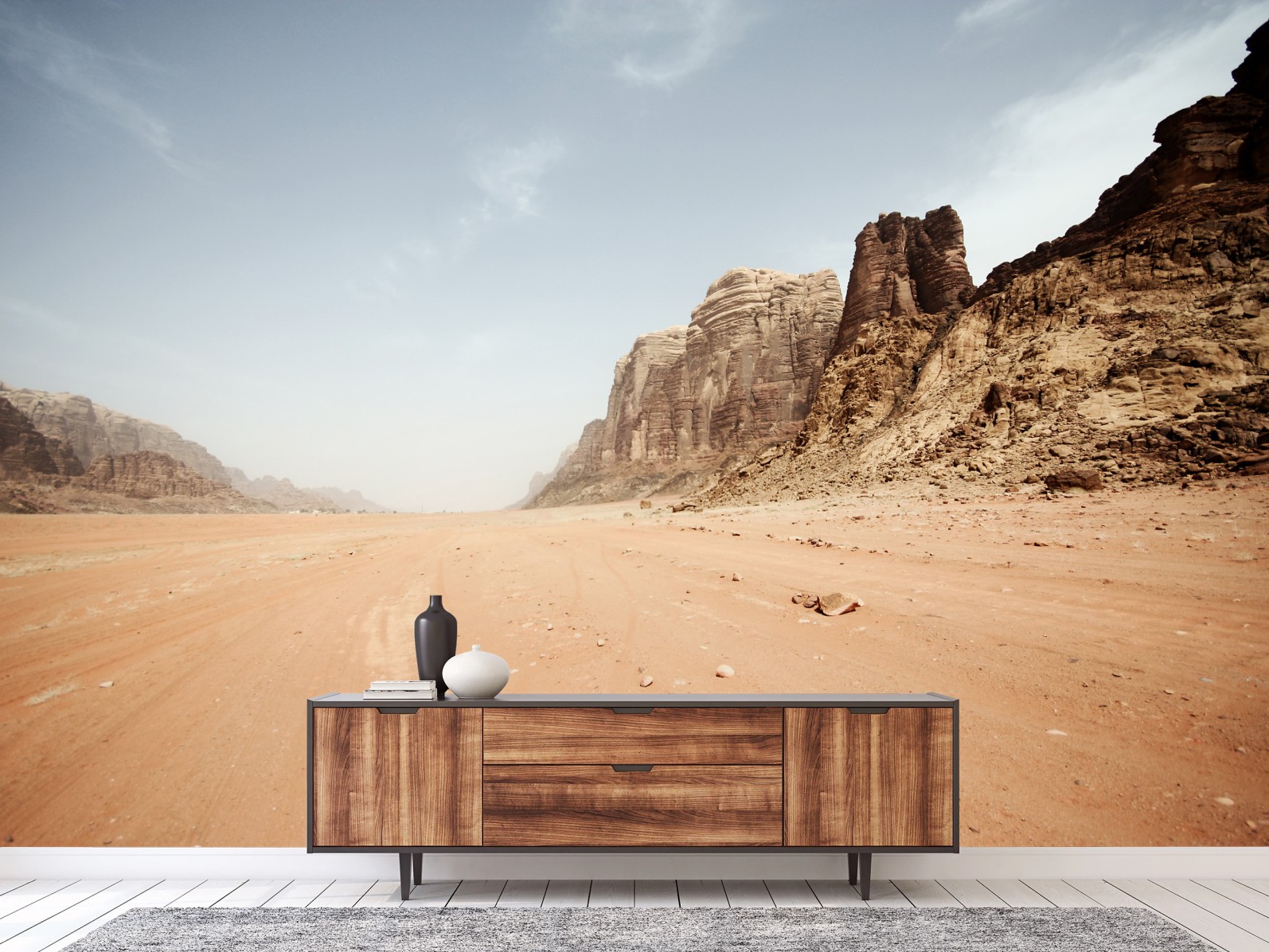 Fototapete Weites wüstenpanorama in Wadi Rum, Jordanien