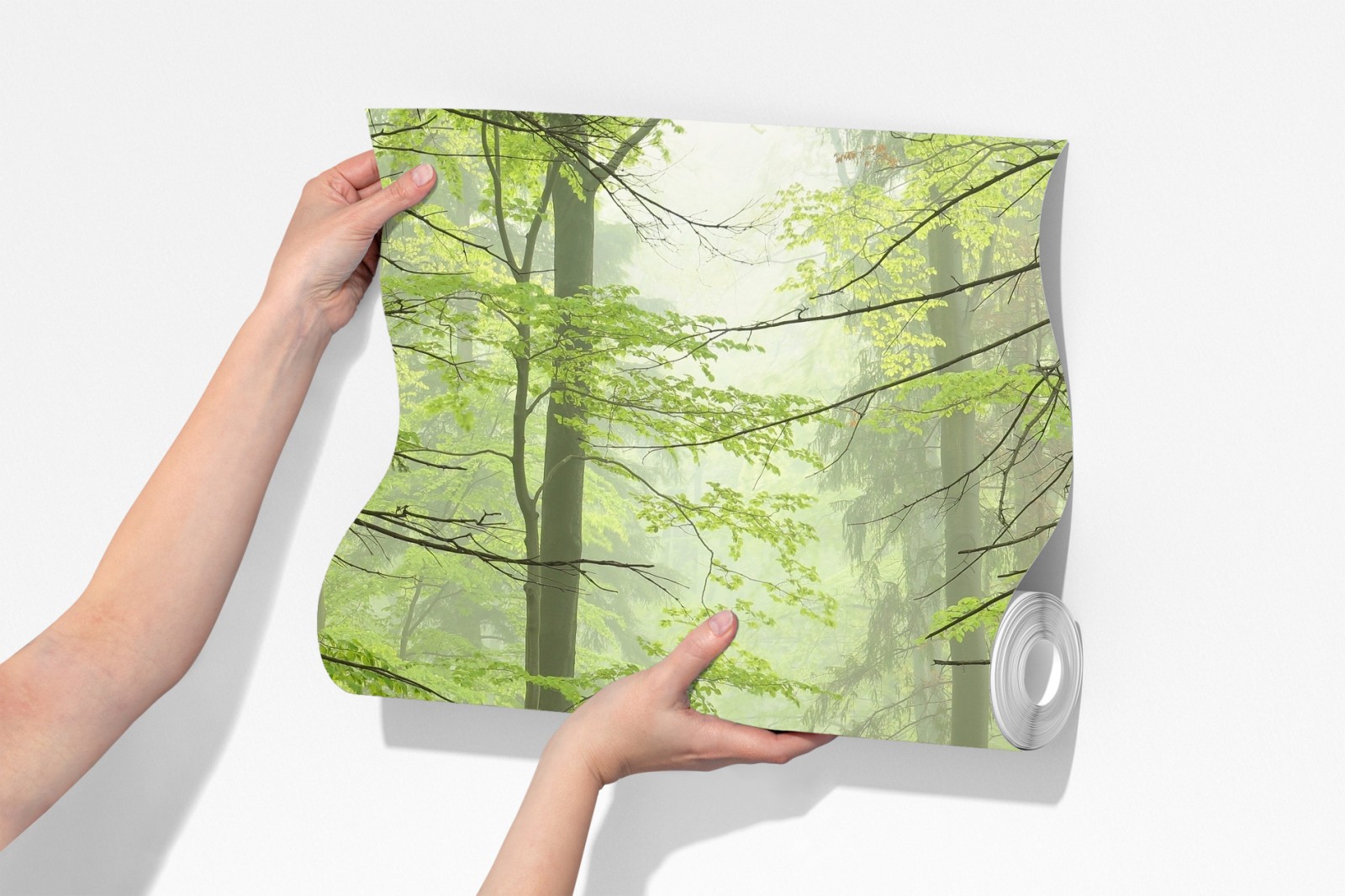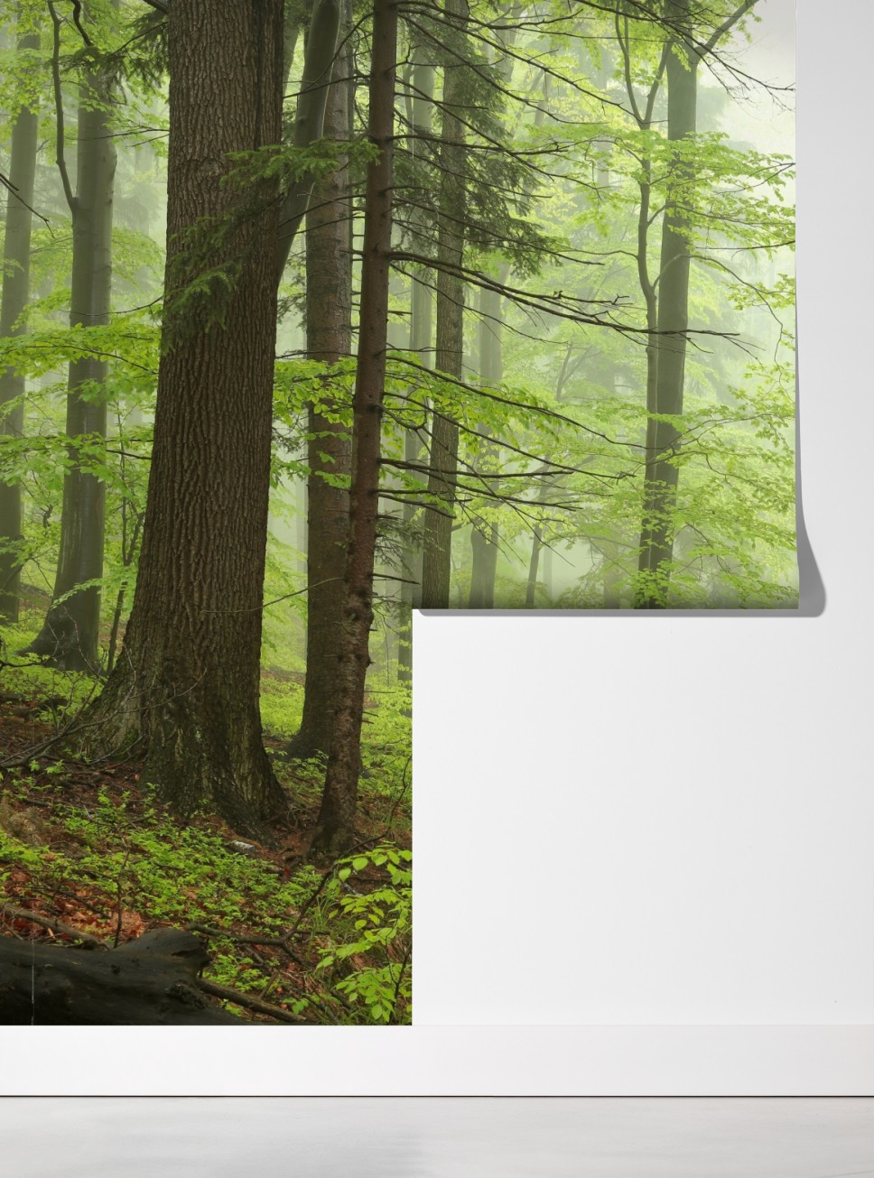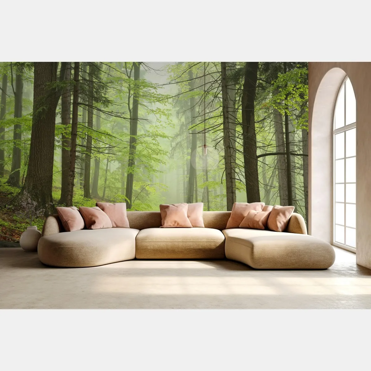 Eine ruhige neblige Waldszene, die natürliche Schönheit und Entspannung in jeden Raum bringt.