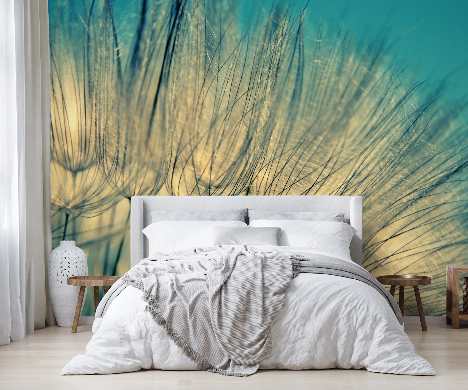 Fototapete Zarte löwenzahn-aufnahme in sanftem blau
